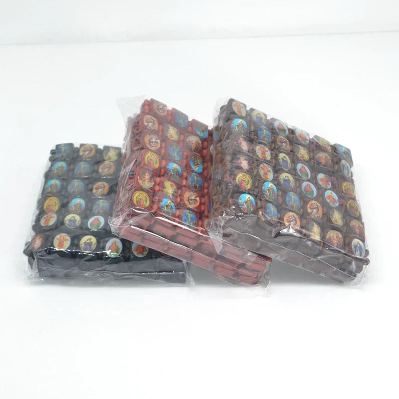 Share faith and tradition with this value set of 36 Wooden Rosary Beads Bracelets, featuring images of Jesus, Virgin Mary, Saints, and Angels. Perfect for group gifting, church events, or personal devotion.