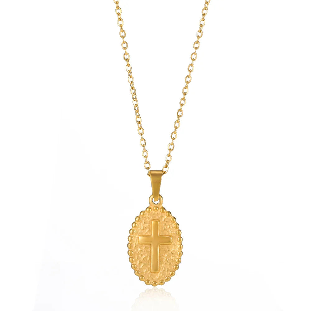 Caravaca Angels Crucifix Necklace – Gold Stainless Steel Jesus Cross for Men & Women