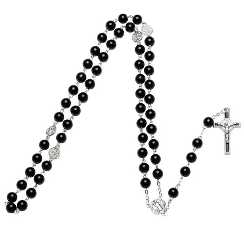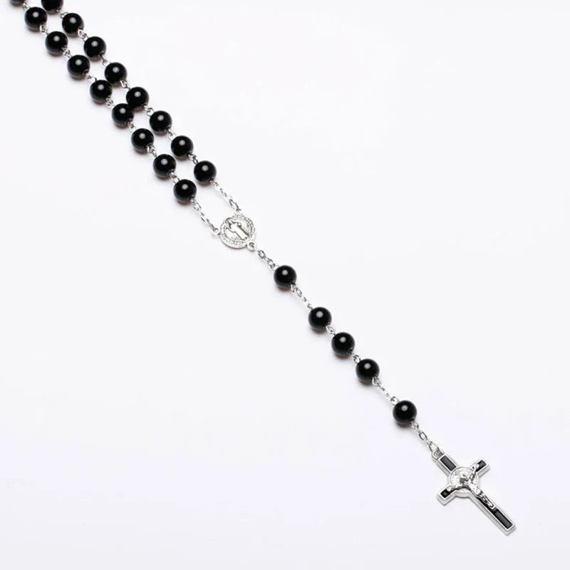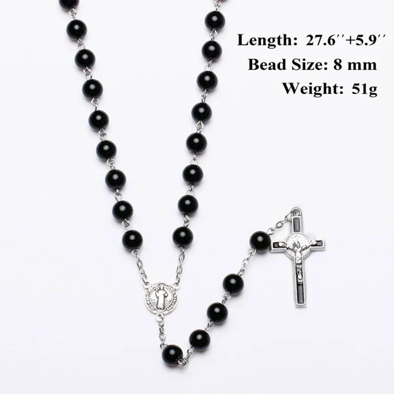 Catholic Black Rosary Beads Necklace – Long Cross Pendant Religious Jewelry for Men & Women