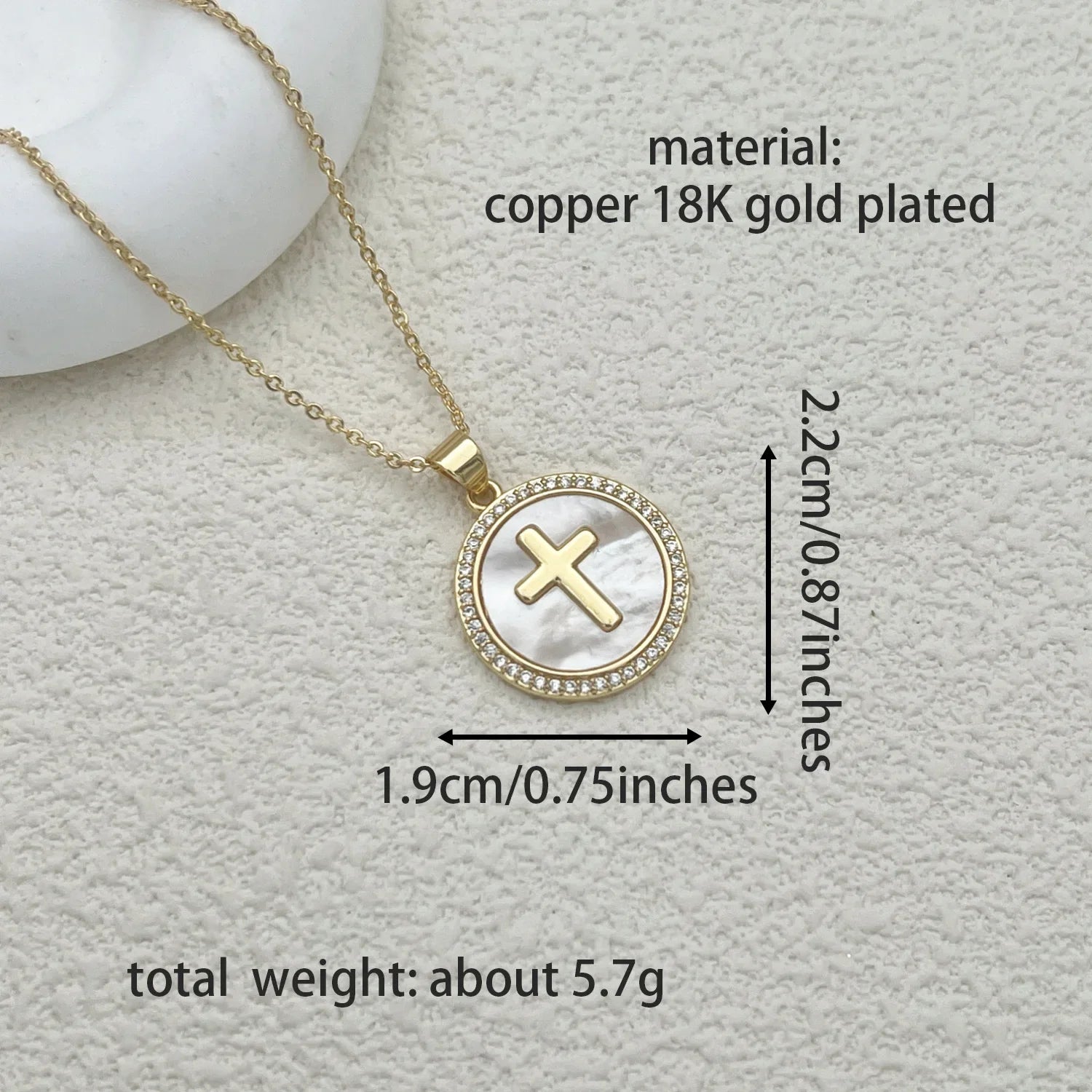 Catholic Jesus Cross Necklace – Gold Plated Copper with Saint Benedict, Virgin Mary & Zircon Details