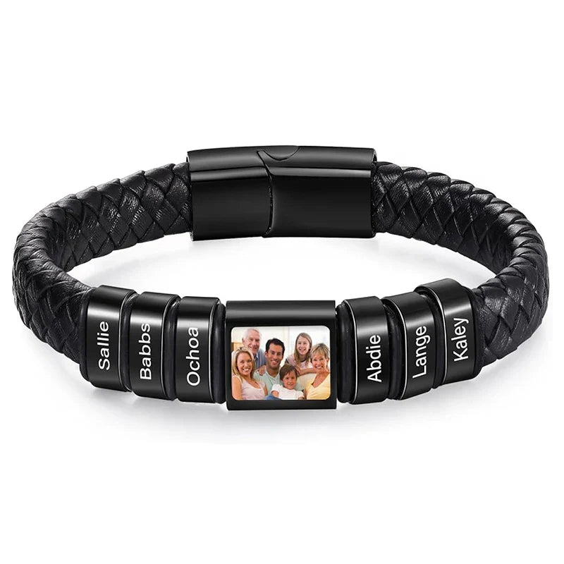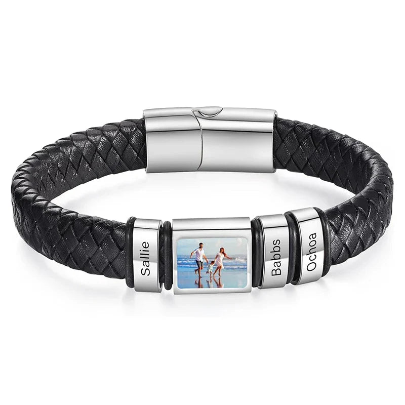 Custom Photo Bracelet – Personalized Leather Name Bracelet for Men, Boys & Husbands
