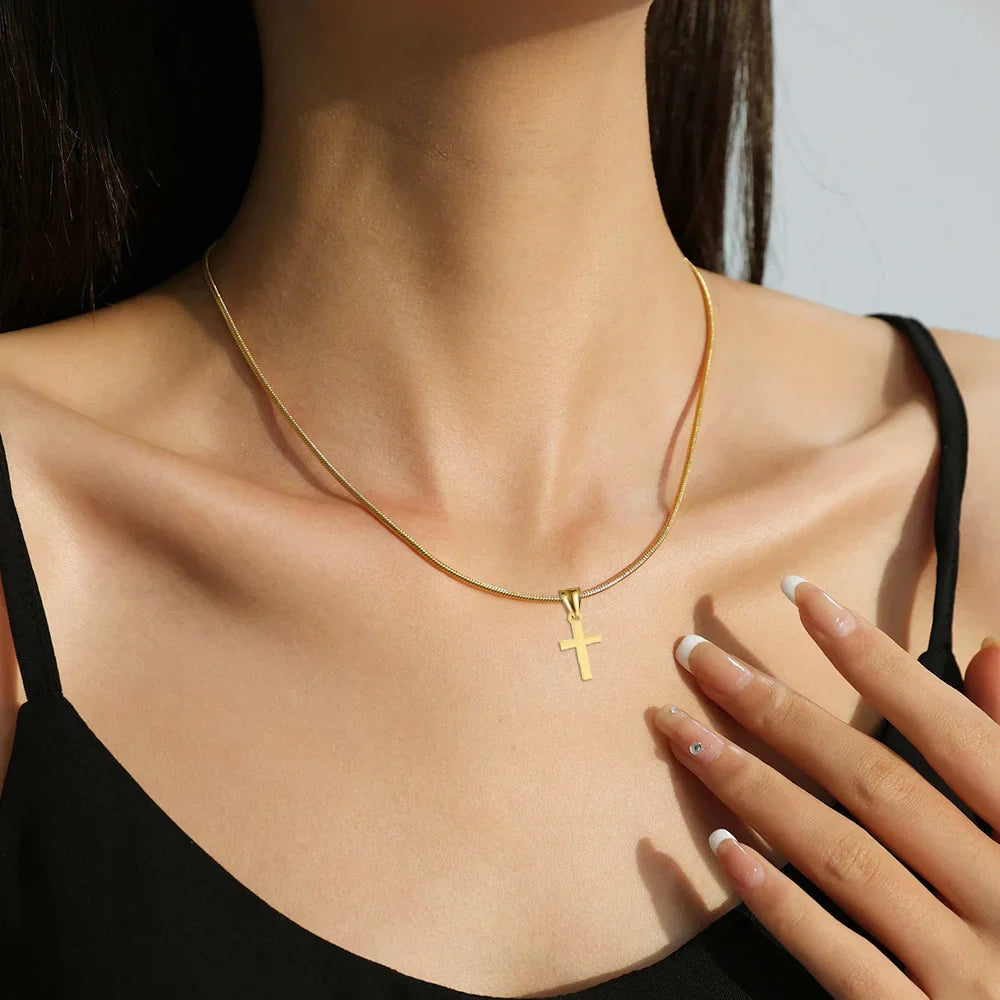 Fashion Small Jesus Cross Pendant Necklace for Women – Gold & Silver Stainless Steel Snake Chain