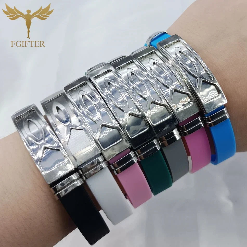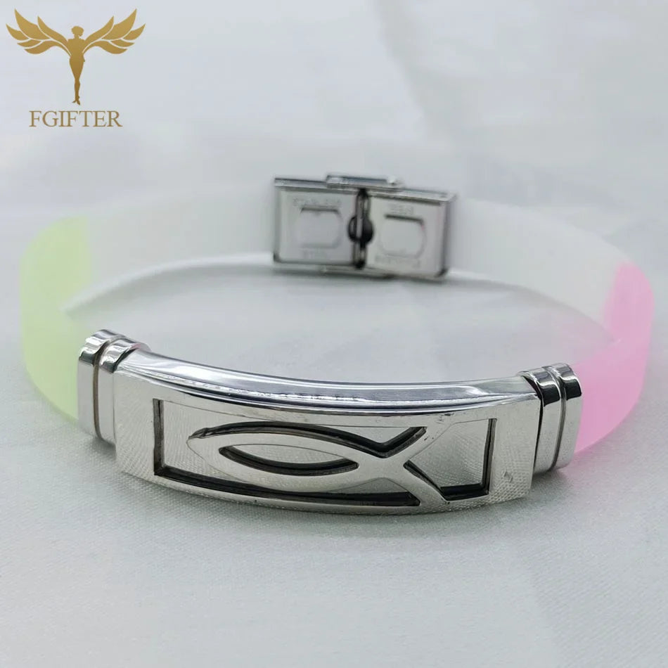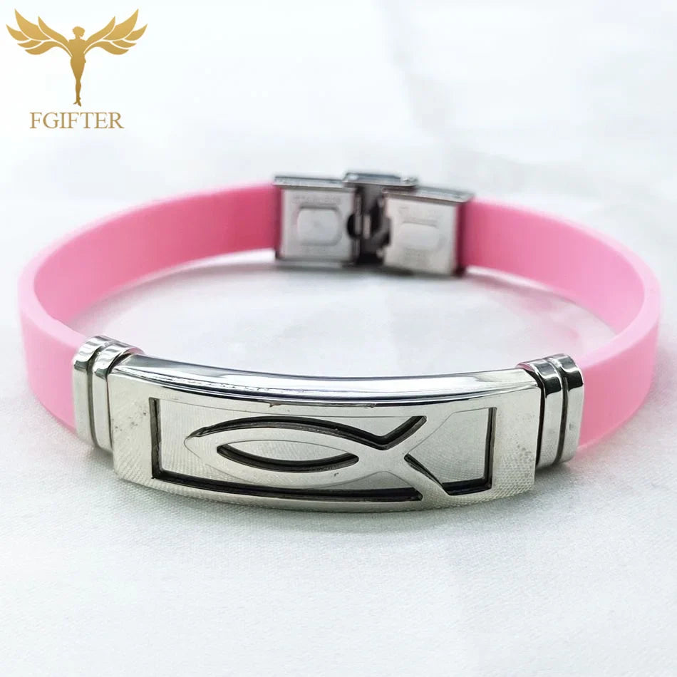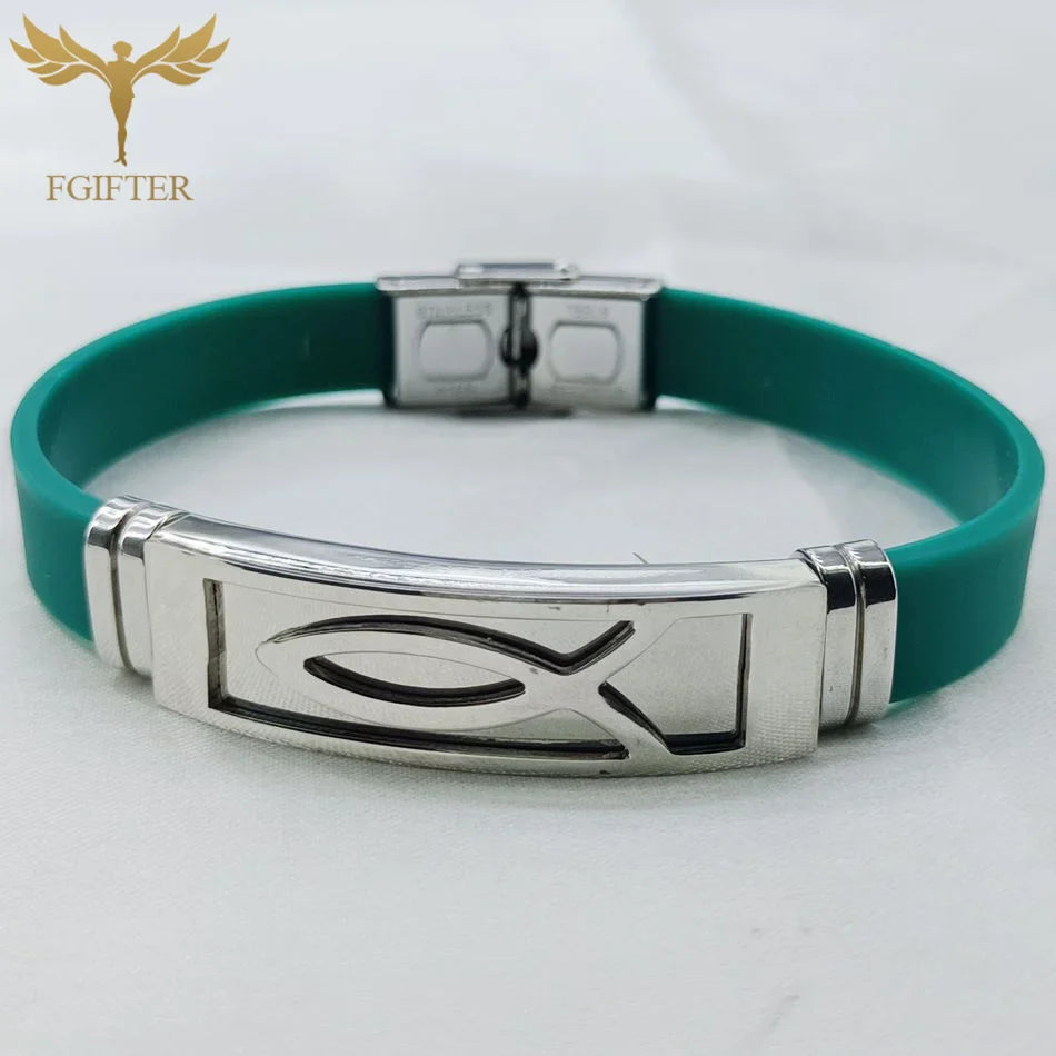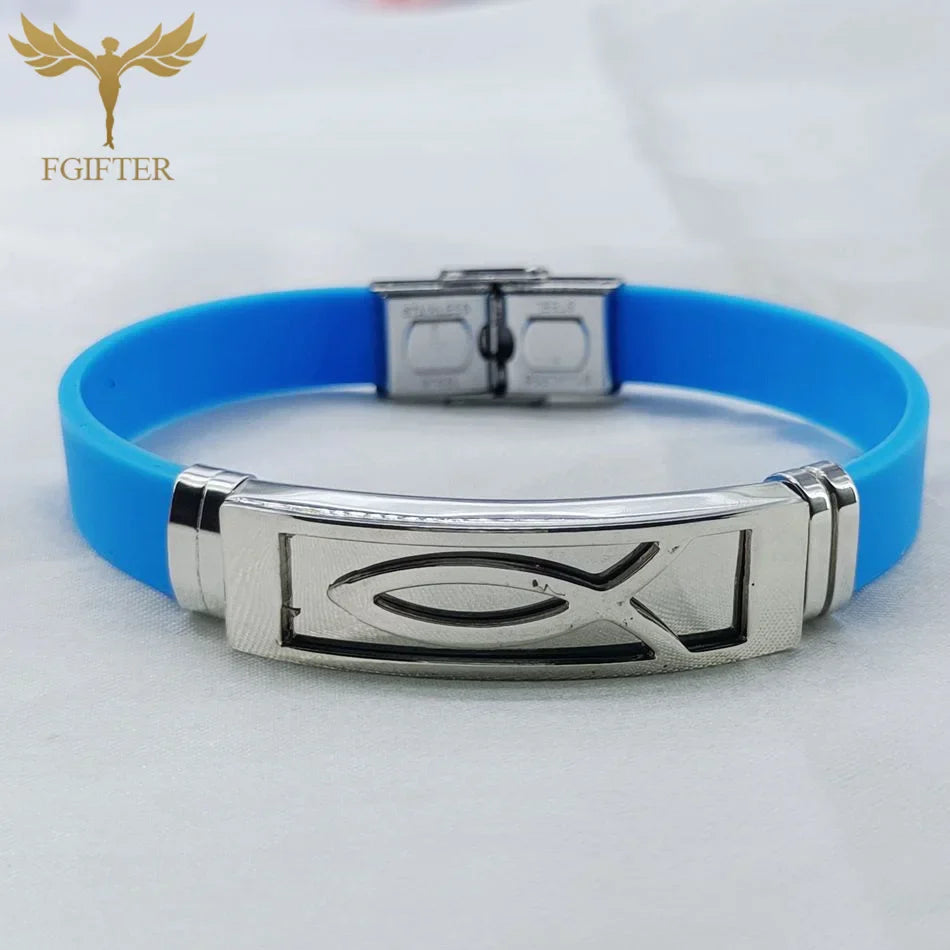 Simple Stainless Steel Jesus Fish Symbol Bracelet – Colorful Rubber Christian Wristband with Buckle