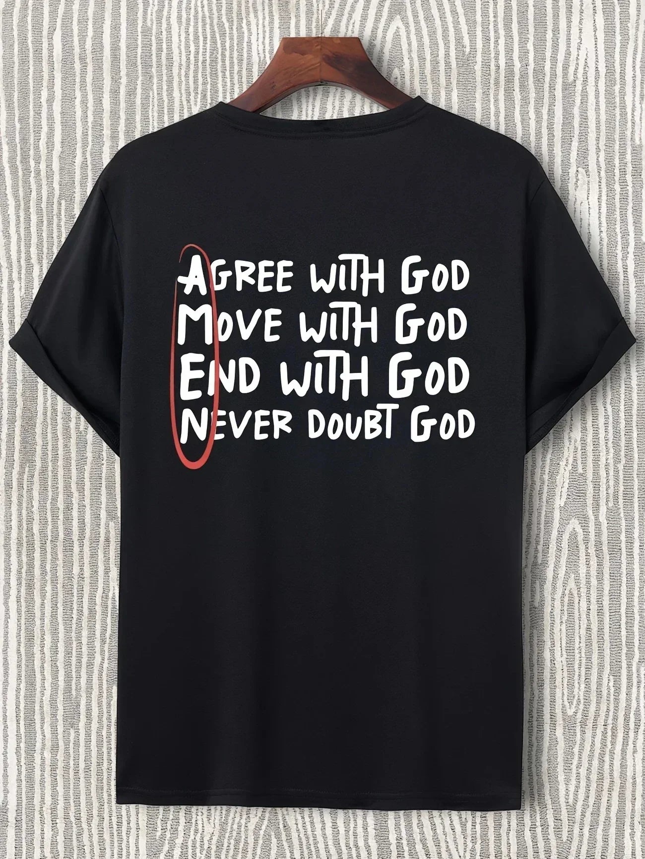Make a subtle yet strong statement of belief — wear this "God" T-shirt and let your daily style reflect your eternal faith.