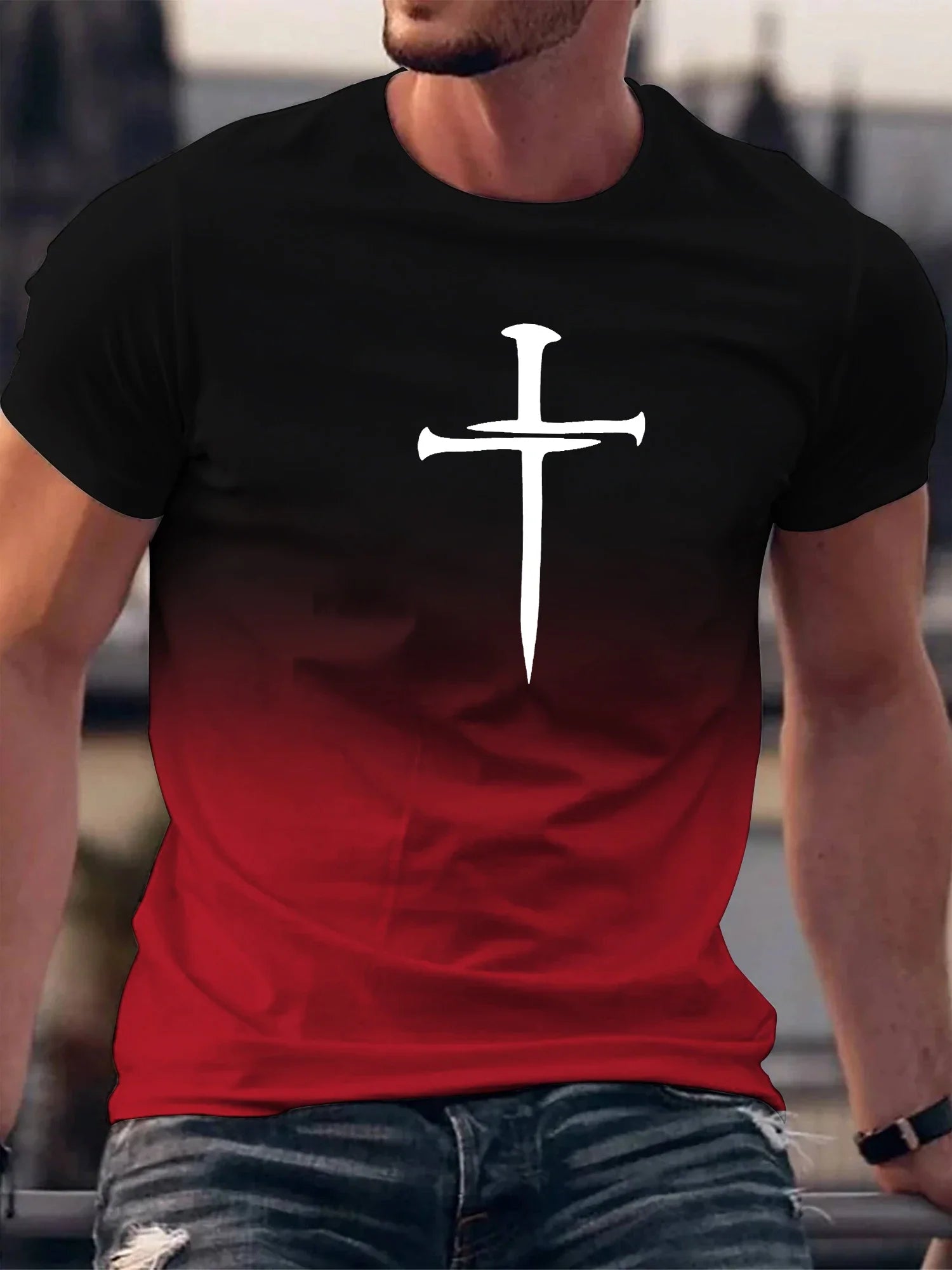 Gradient Christian Cross 3D Print T-Shirt – Men's Fashion Sport & Casual Tee