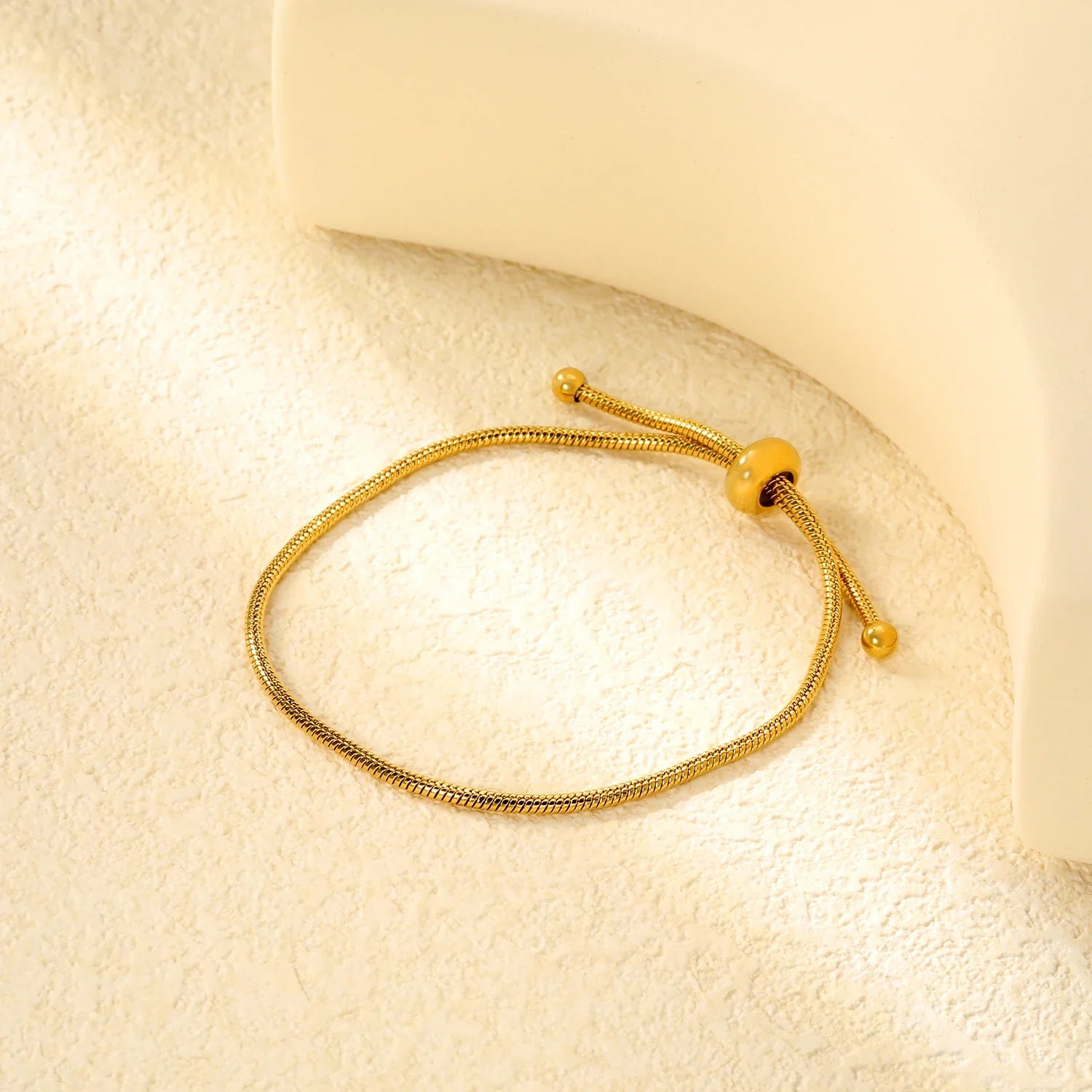 LUXUSTEEL Simple Hollow Circular Buckle Bracelet – Stainless Steel Chain Jewelry for Women & Girls