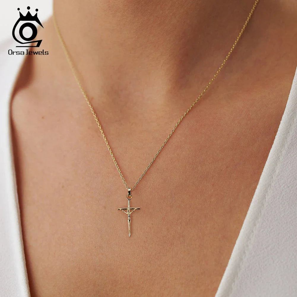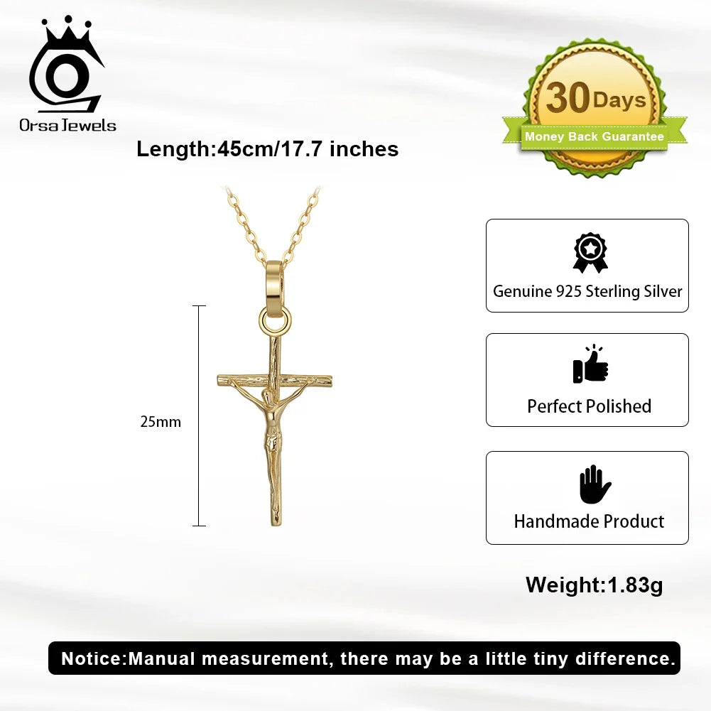 ORSA JEWELS 925 Sterling Silver Cross Pendant Necklace – 25mm Classic Christian Jewelry for Women