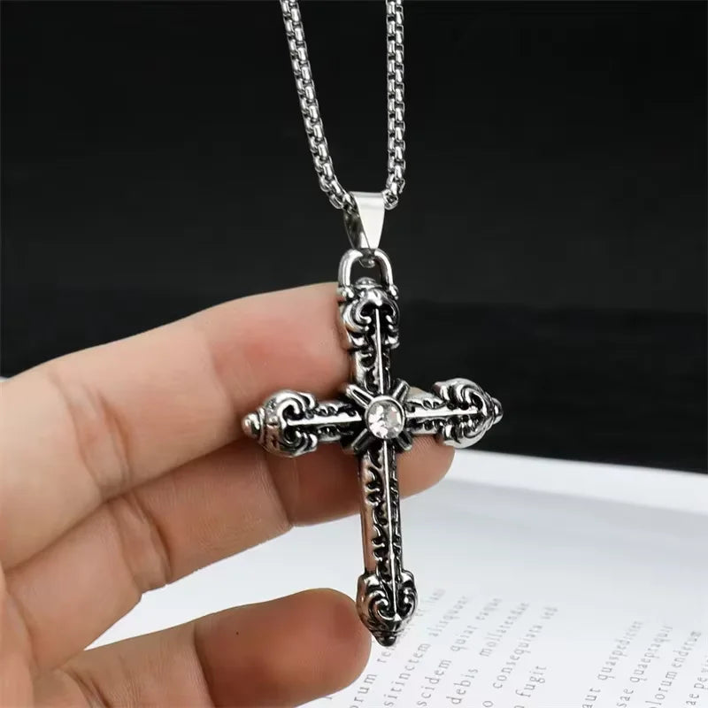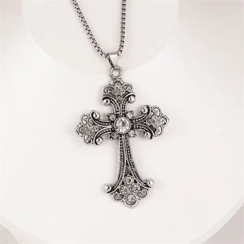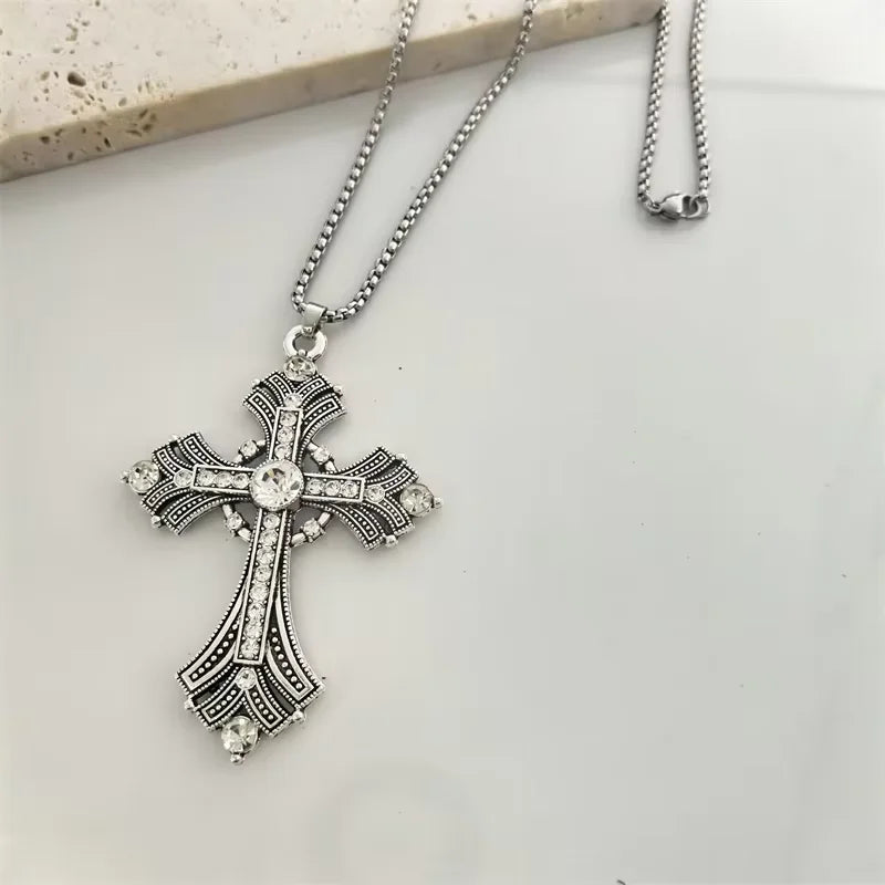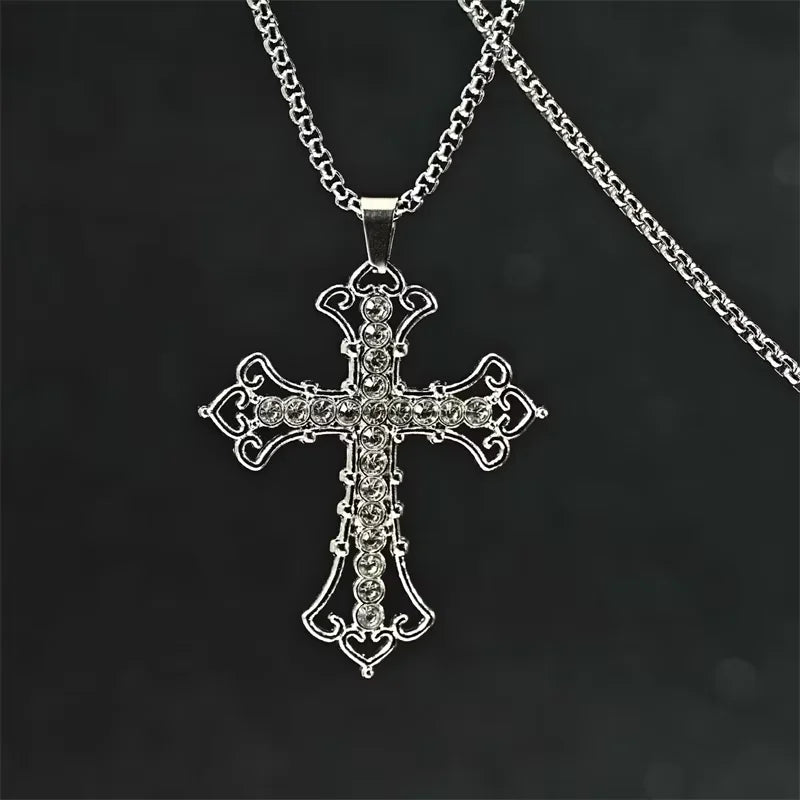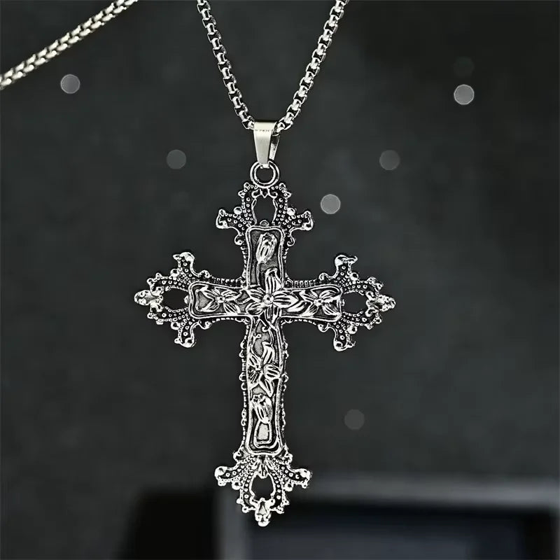 Retro Gothic Cross Necklace – Unisex Streetwear Jewelry for Trendsetters