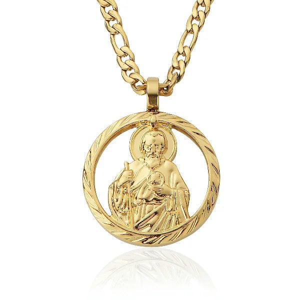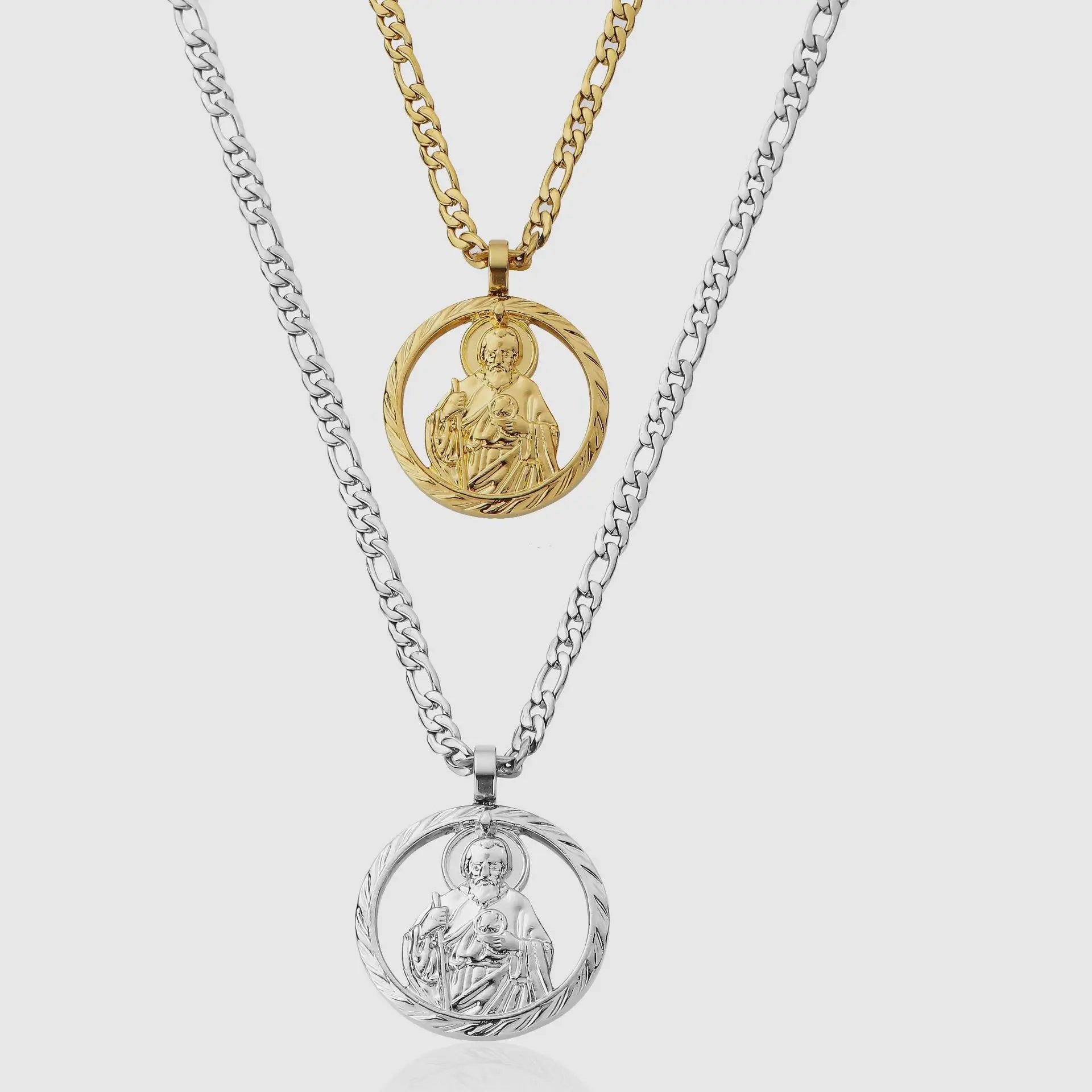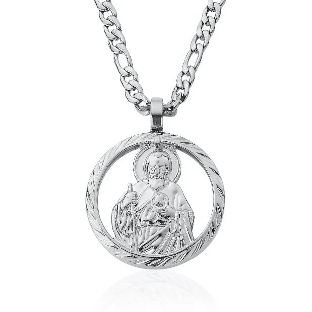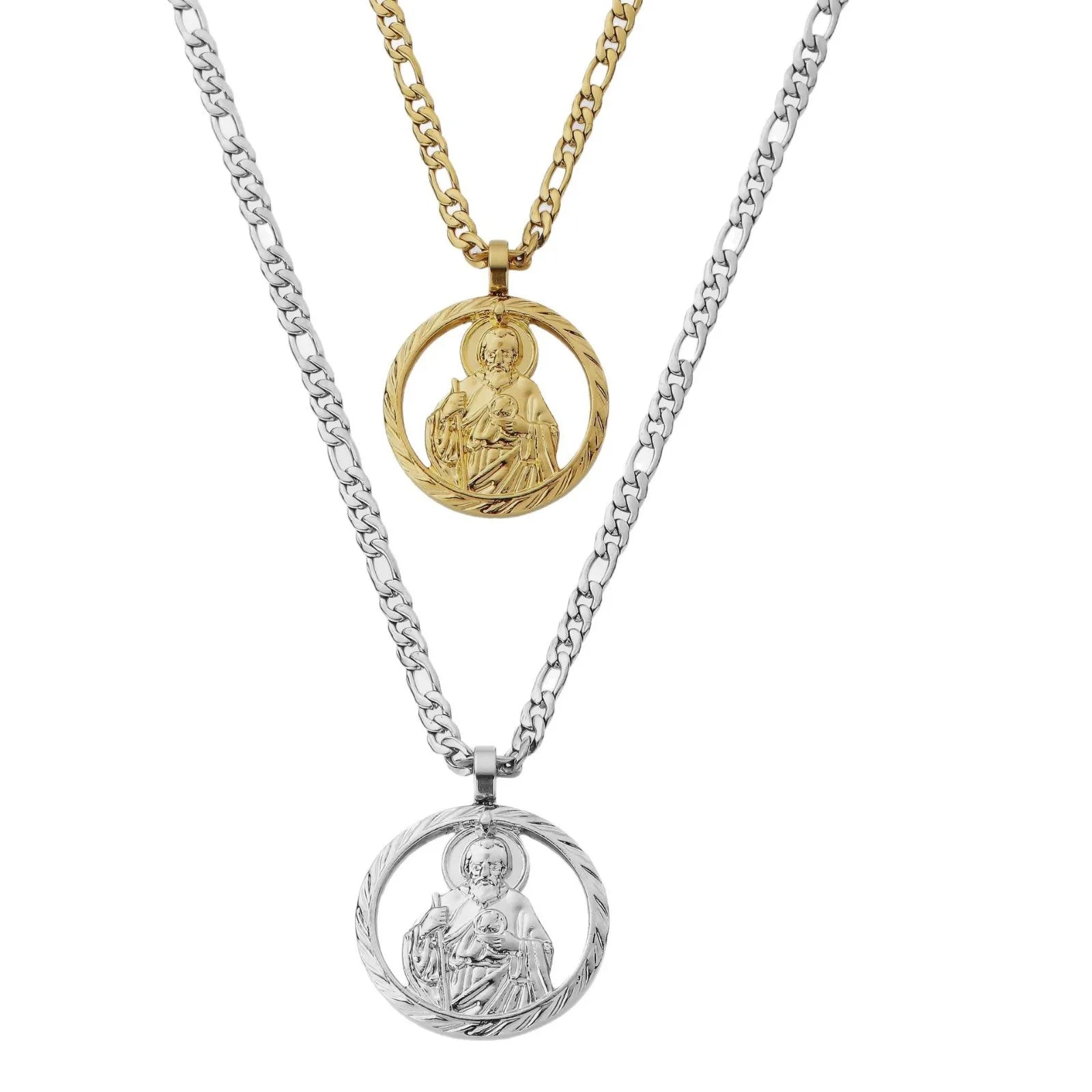 St. Jude Pendant Necklace for Men & Boys – Waterproof Christian Jewelry with Figaro Chain