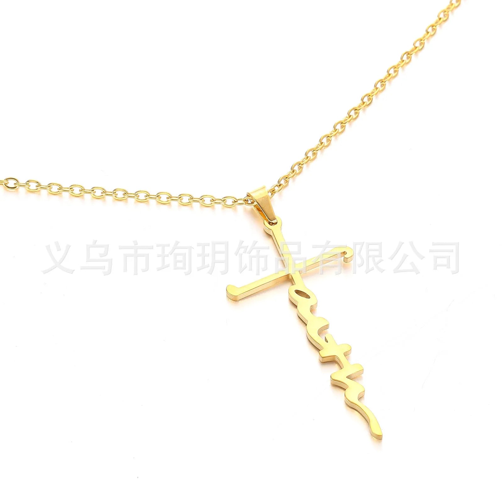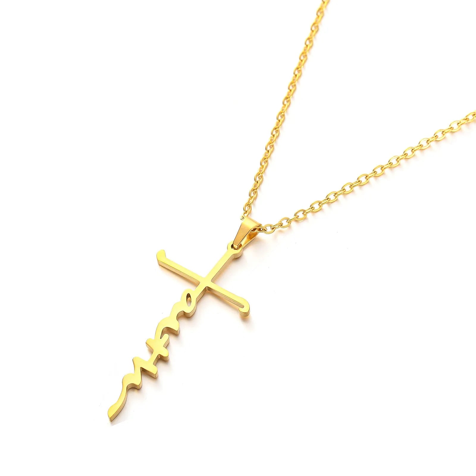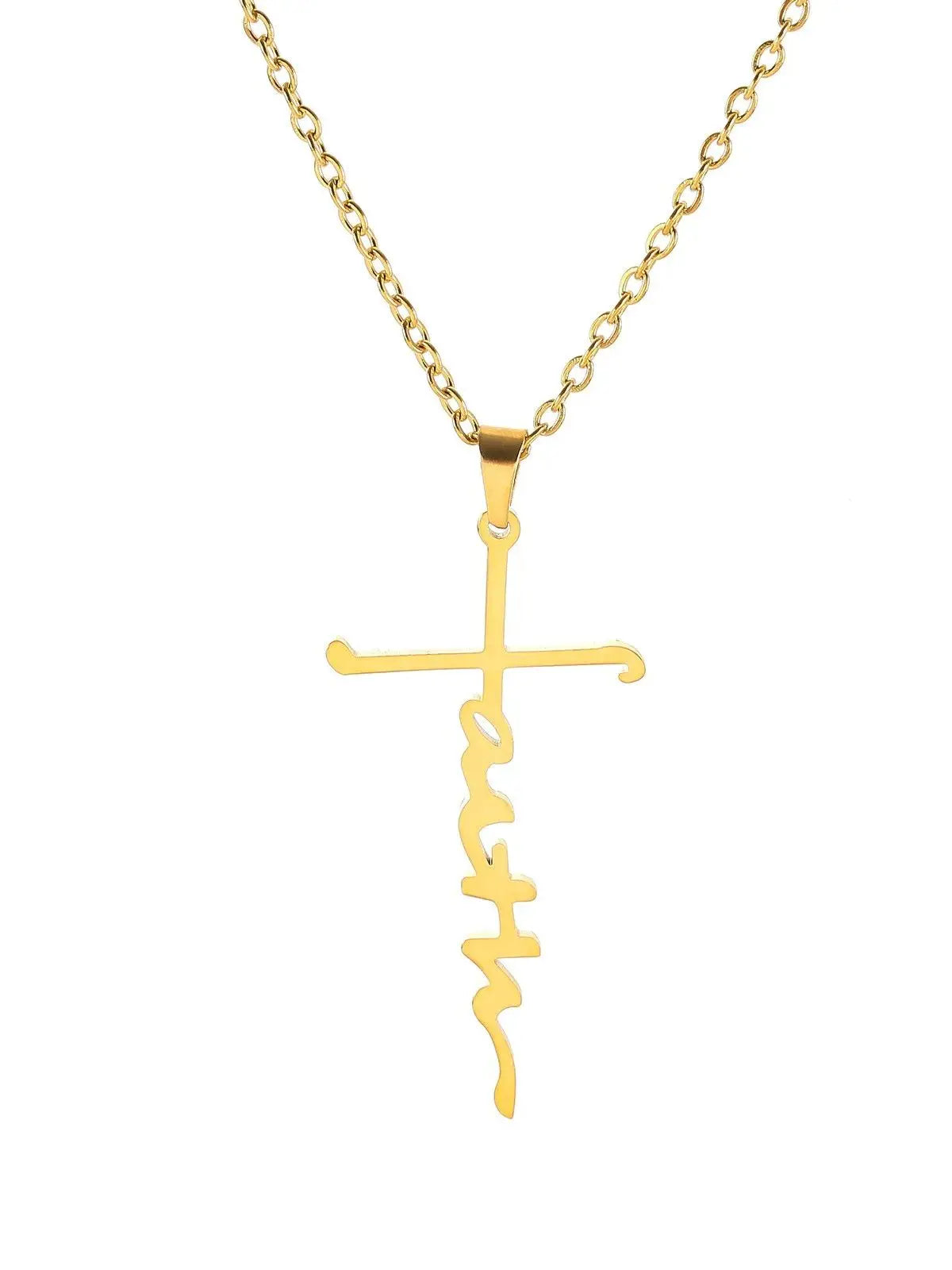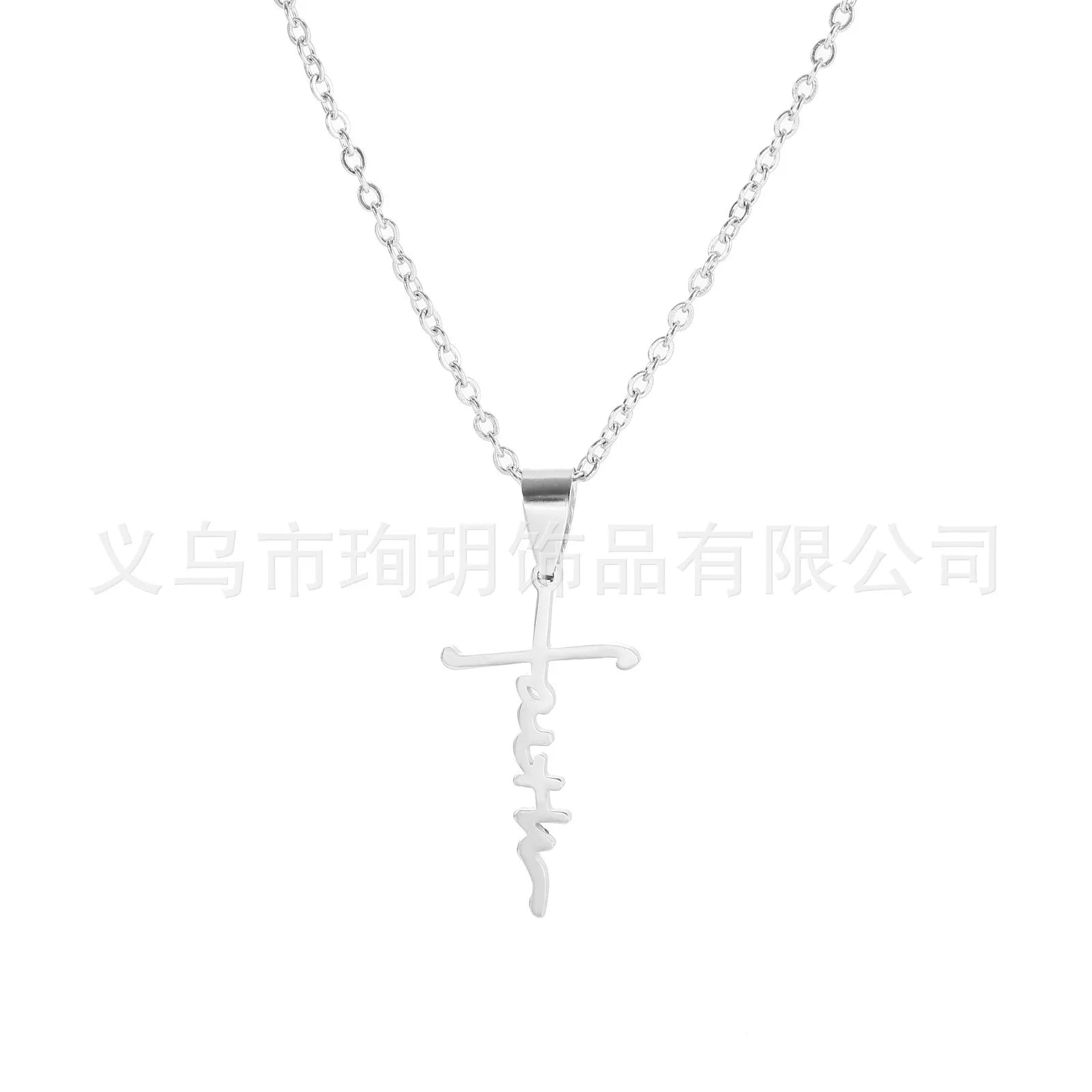 Stainless Steel "Faith God Amazing" Cross Pendant Necklace – Christian Letter Jewelry for Daily Inspiration