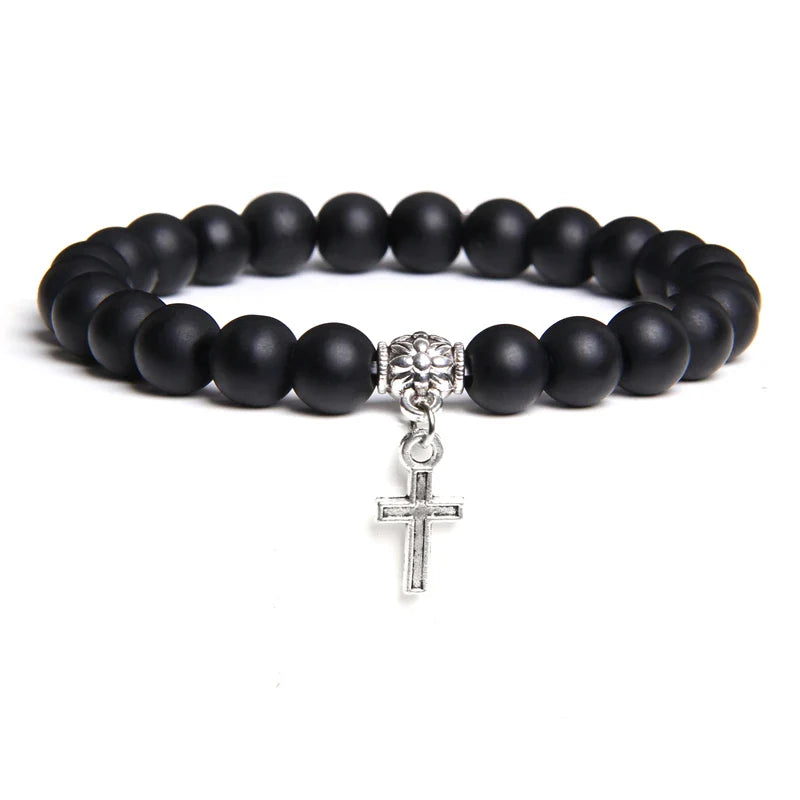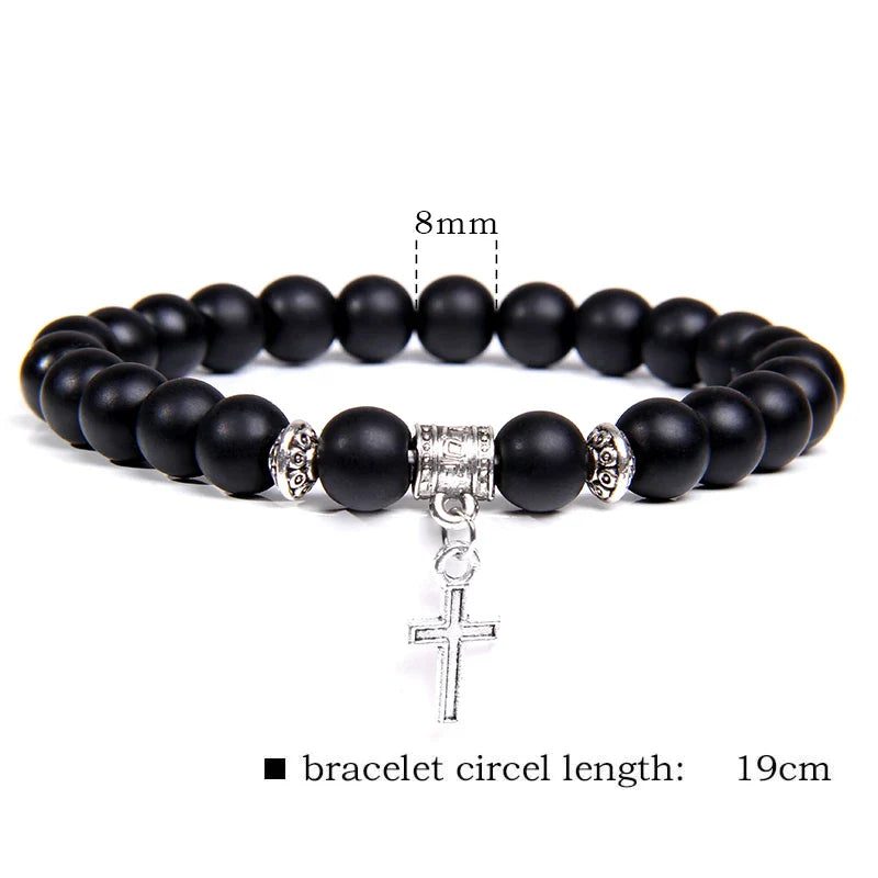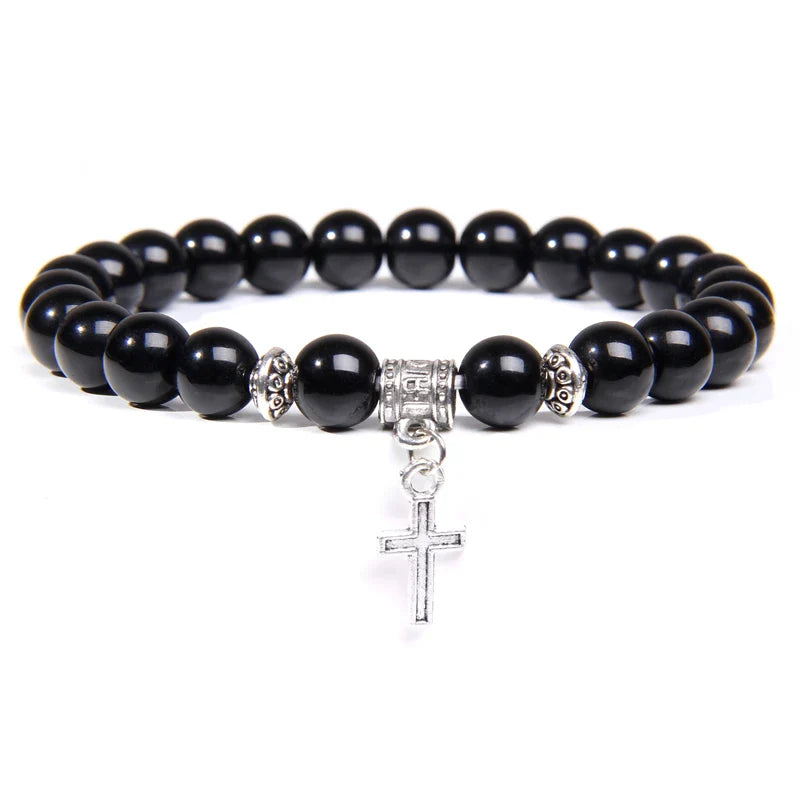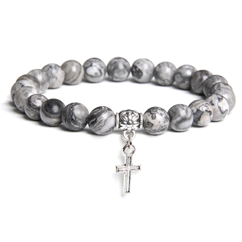 Balance style and spirituality with this Trendy Beads Bracelet — featuring natural stone beads and a sleek silver color cross pendant, perfect for healing, prayer, and everyday charm for both men and women.