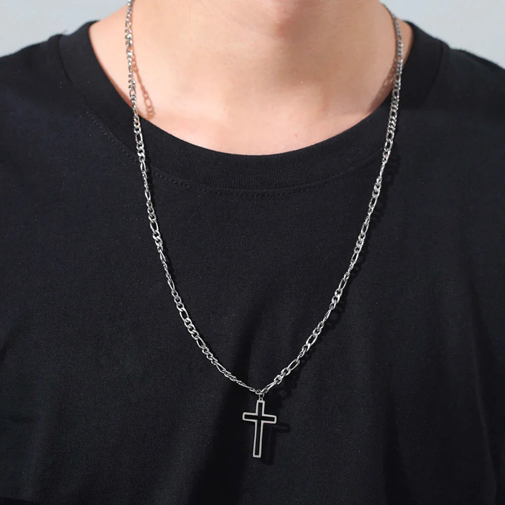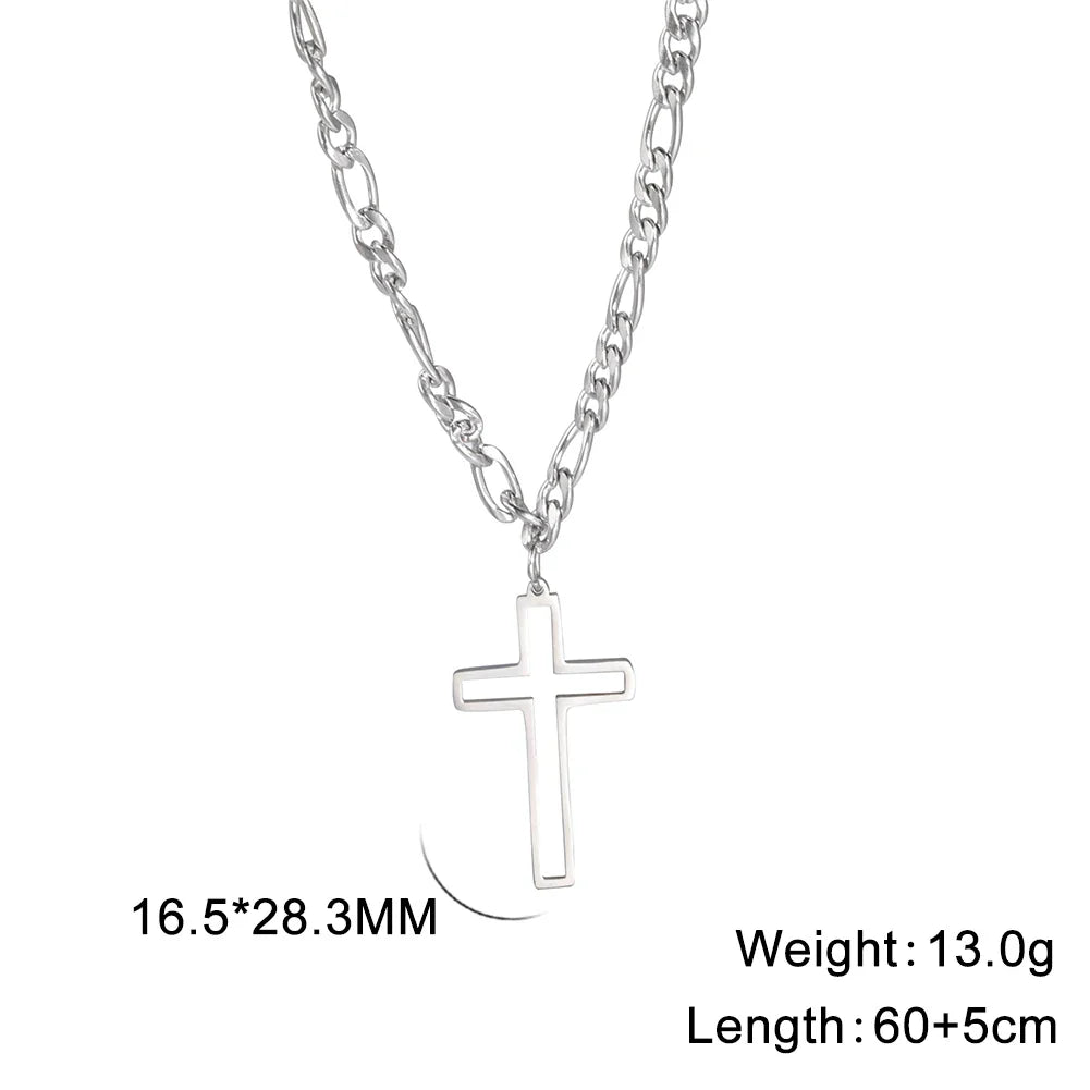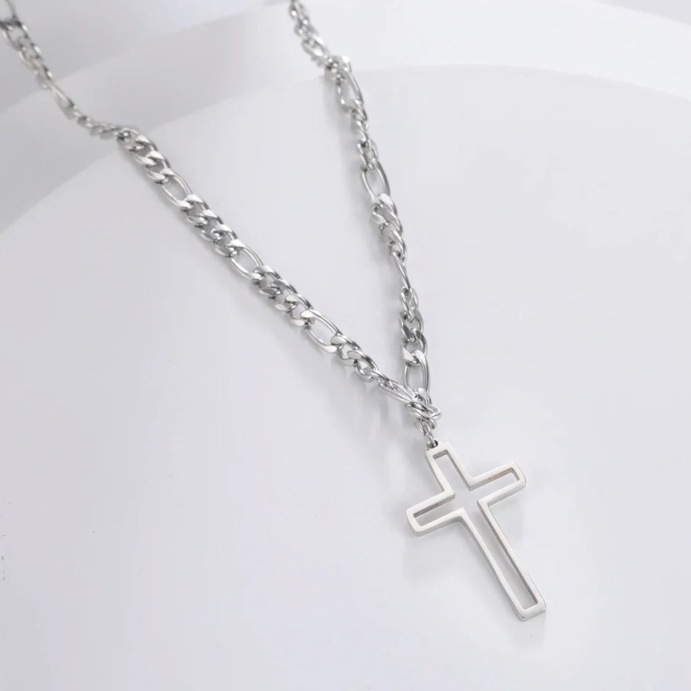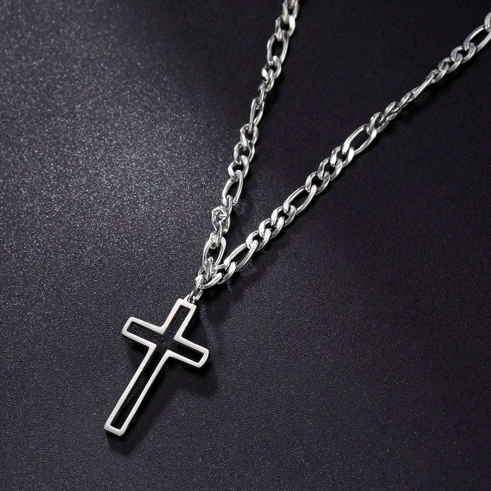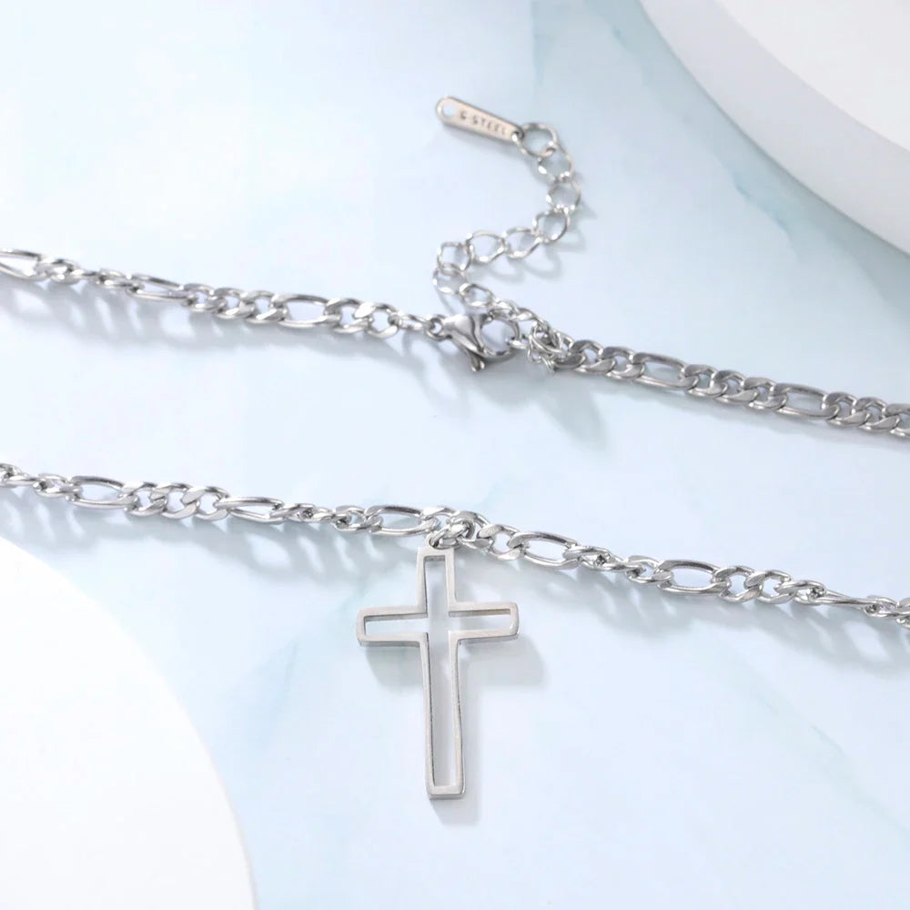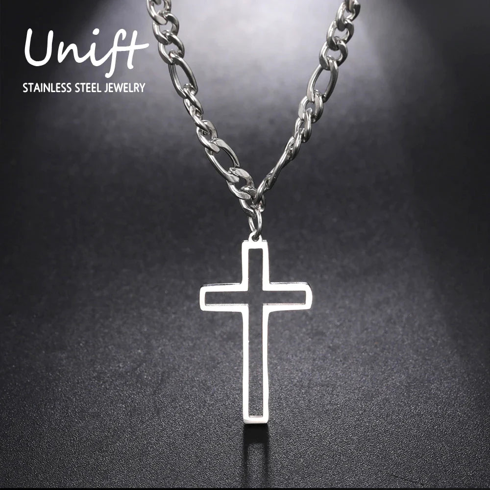 Unift Hollow Cross Necklace for Men – Stainless Steel Figaro Chain Christian Hip-Hop Jewelry