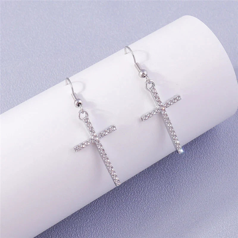 Wear your faith with edge and elegance — stand out with these fashionable crystal cross earrings today!