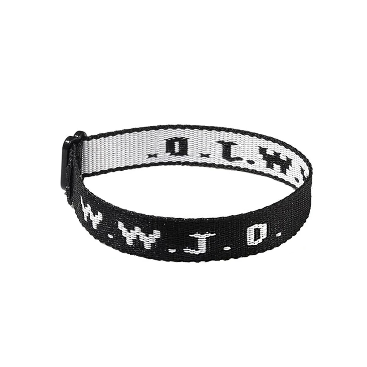Durable woven nylon cord with embroidered WWJD lettering and adjustable knot closure.