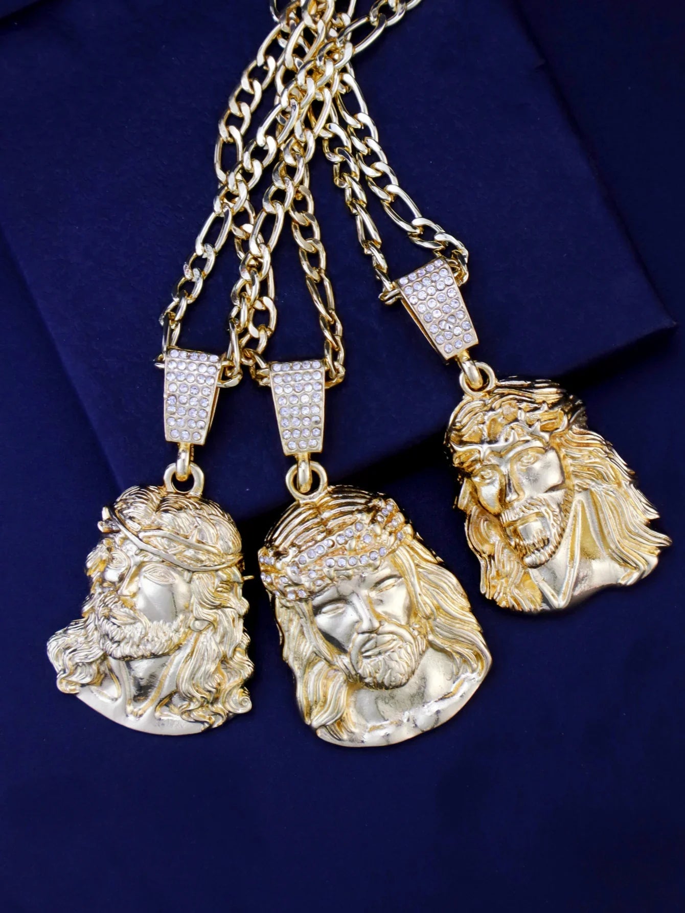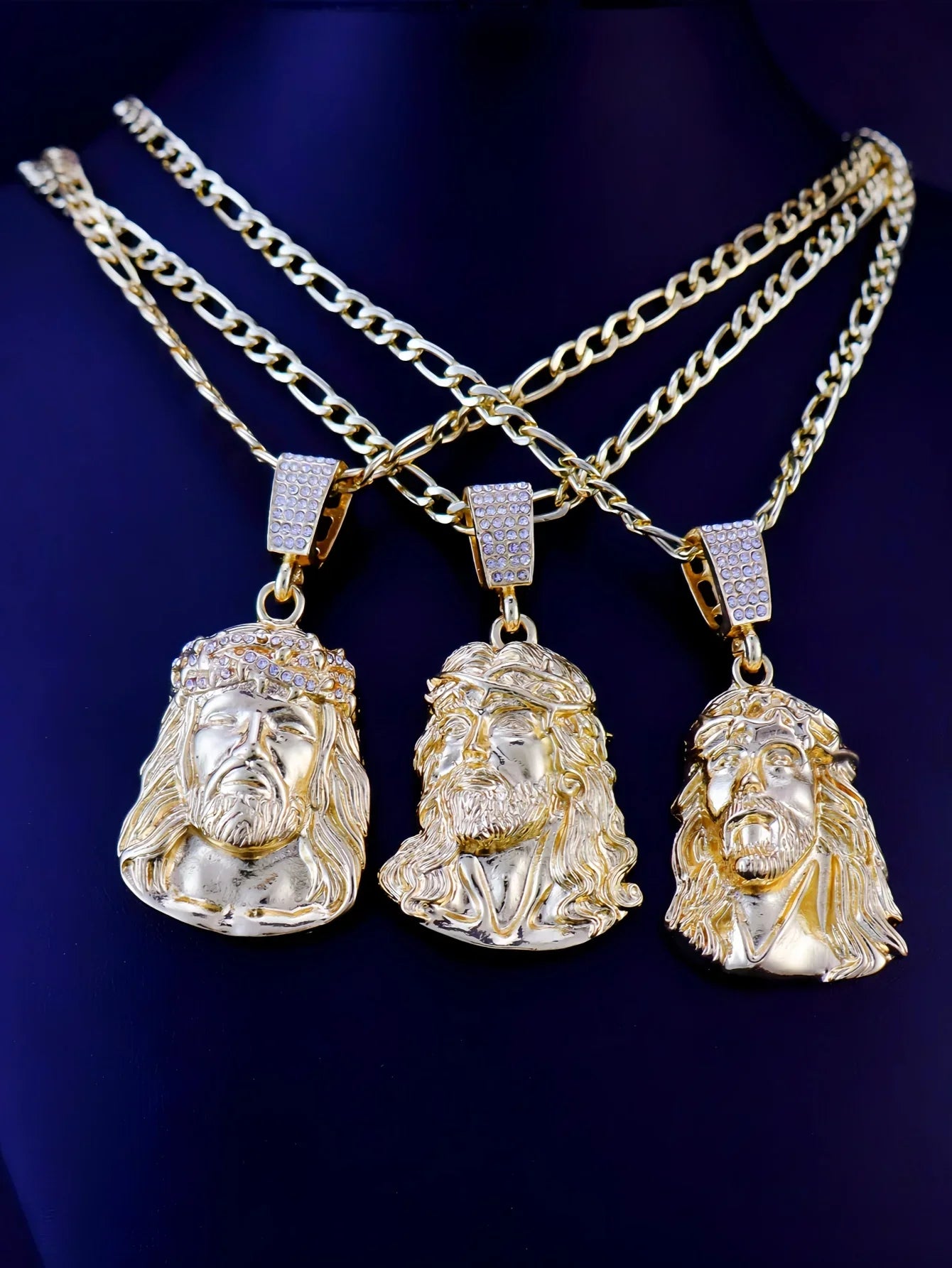 Hip Hop Punk Style Jesus Head Pendant Necklace – Gold Plated Figaro Chain for Men & Women