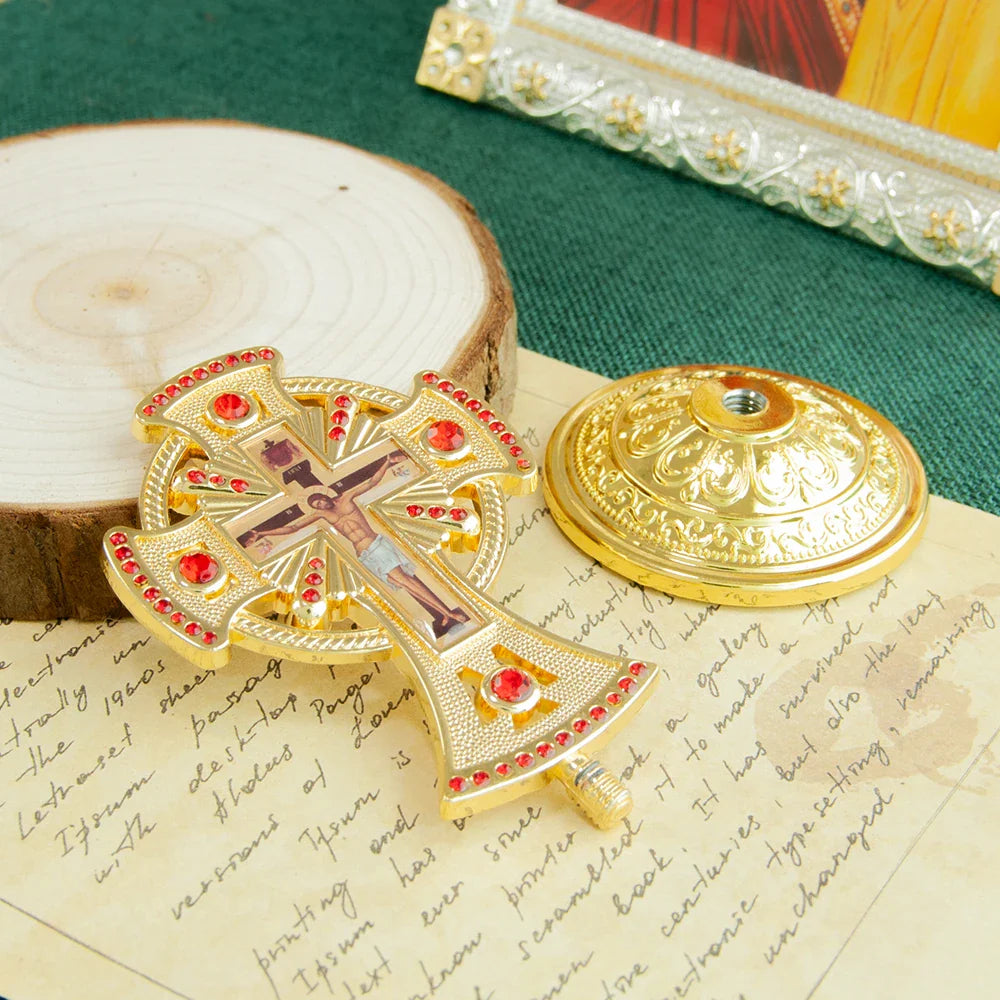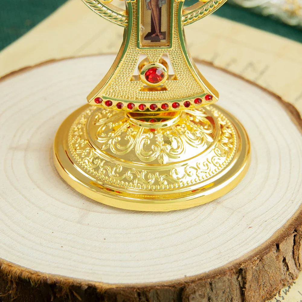 Bring sacred beauty into your space with this Orthodox Crucifix Cross Icon Statue, featuring detailed Jesus imagery and red gemstone accents. Ideal for home altars, churches, or car dashboards — a stunning expression of Eastern Christian faith.