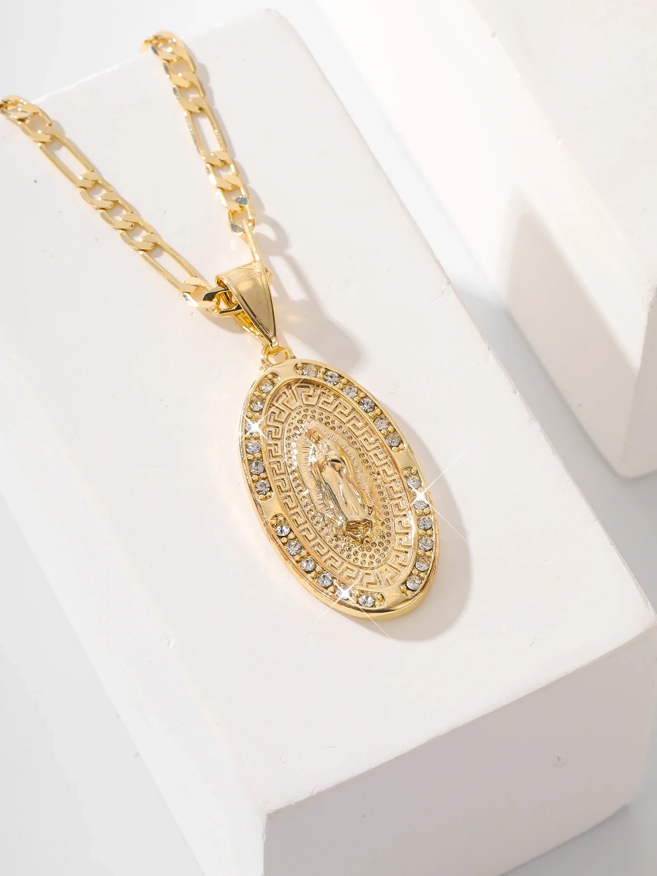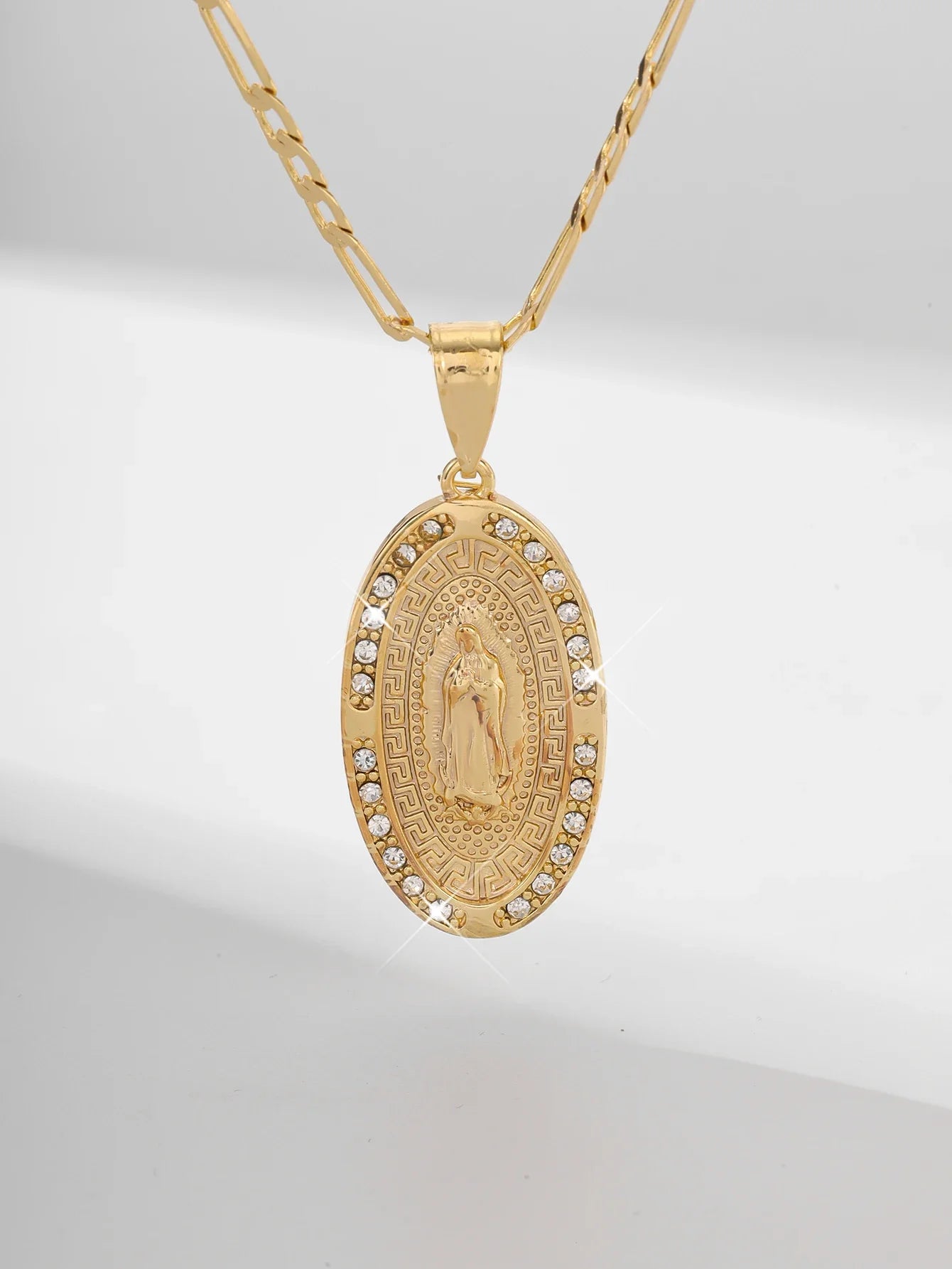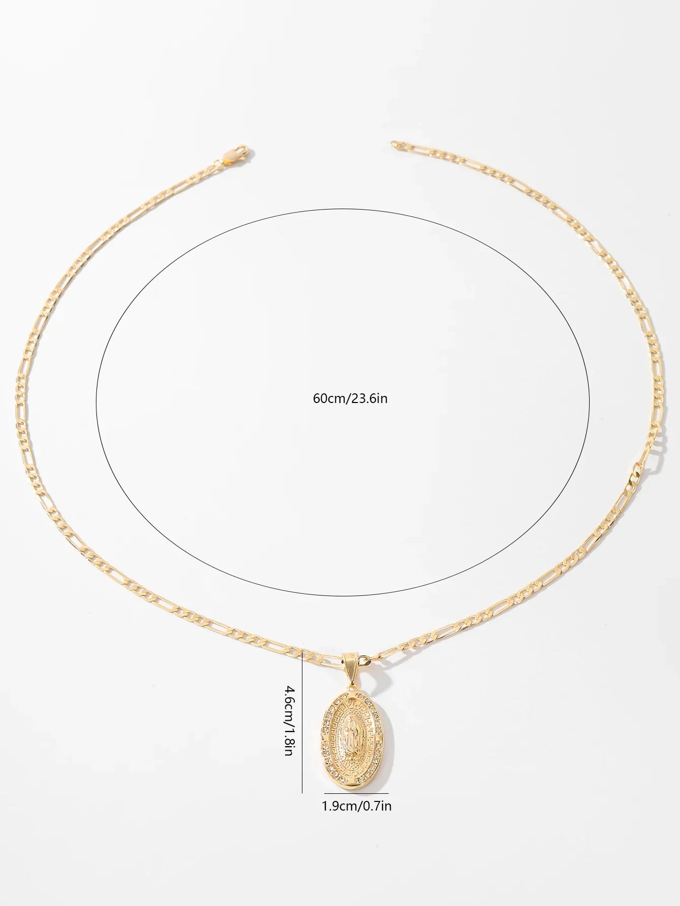 Inlaid Zircon Virgin Mary Pendant – Unisex Copper Religious Necklace for Believers
