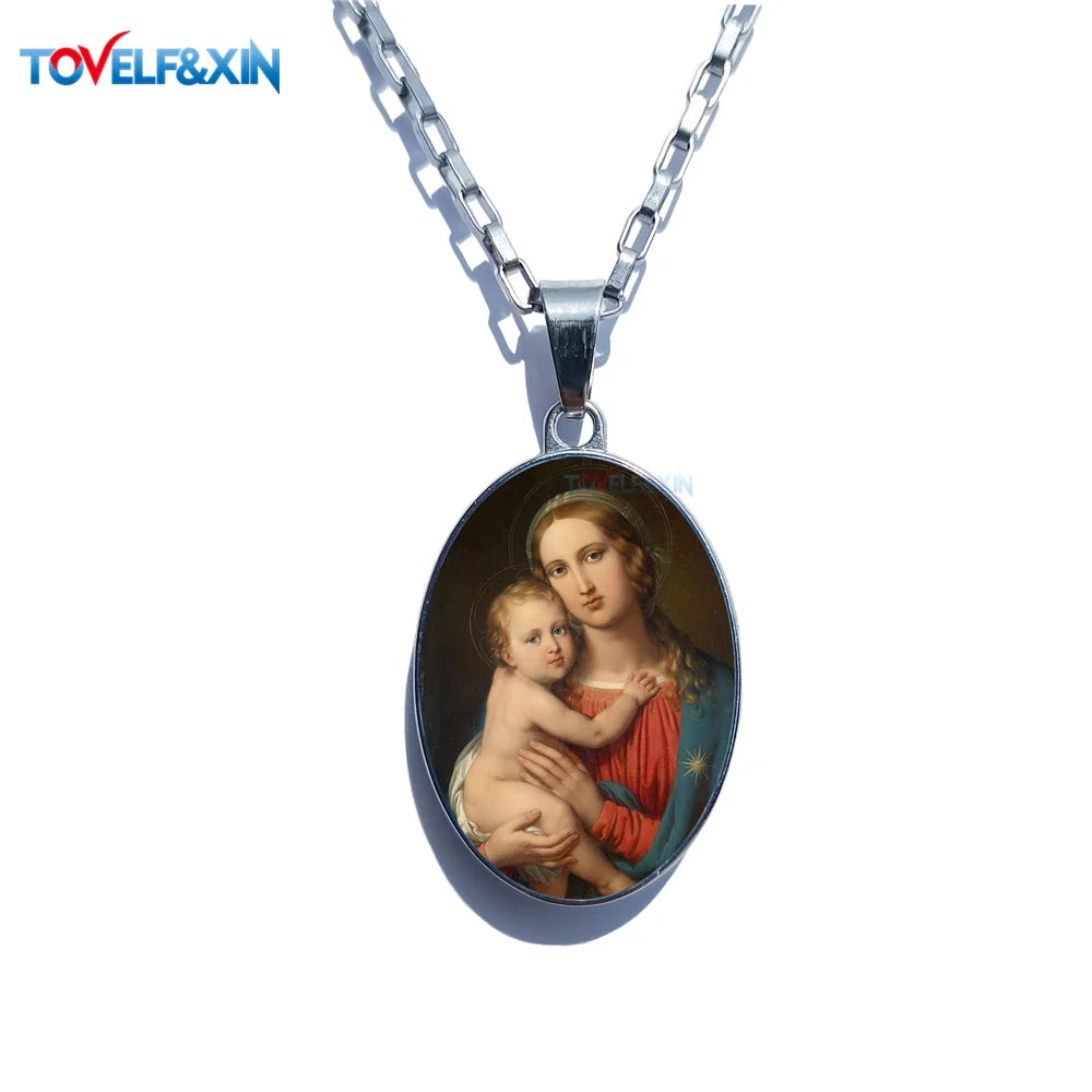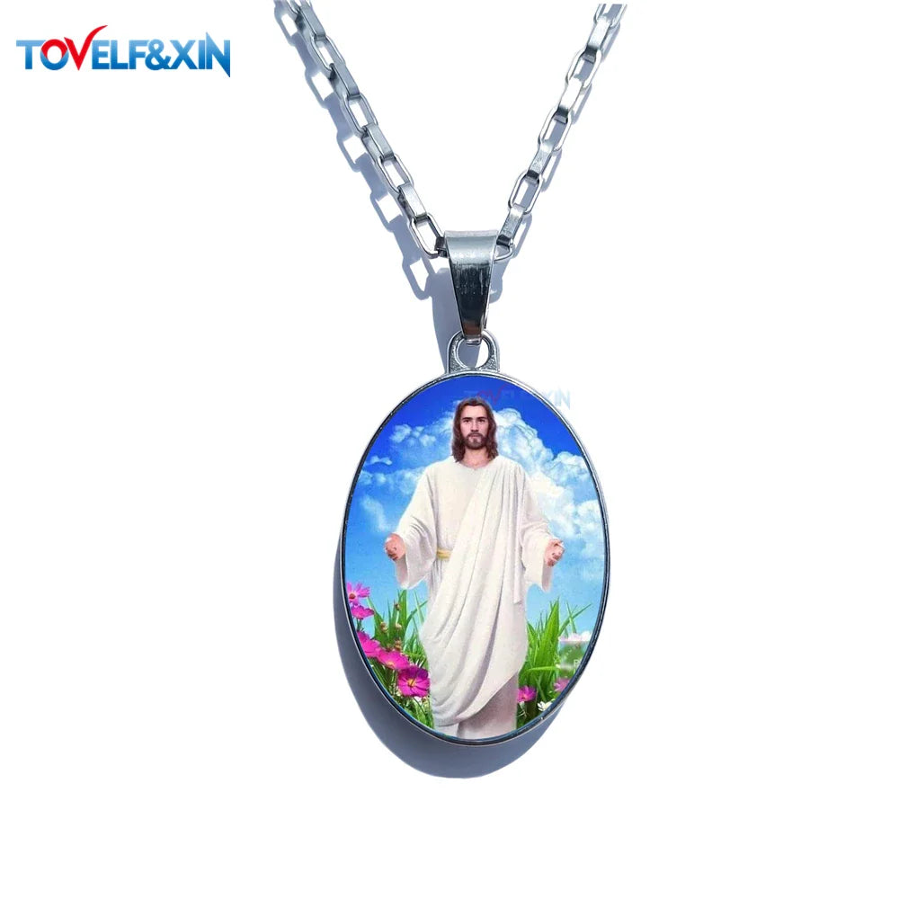 Jesus & Maria Double-Sided Pendant Necklace – Stainless Steel Christian Jewelry Gift