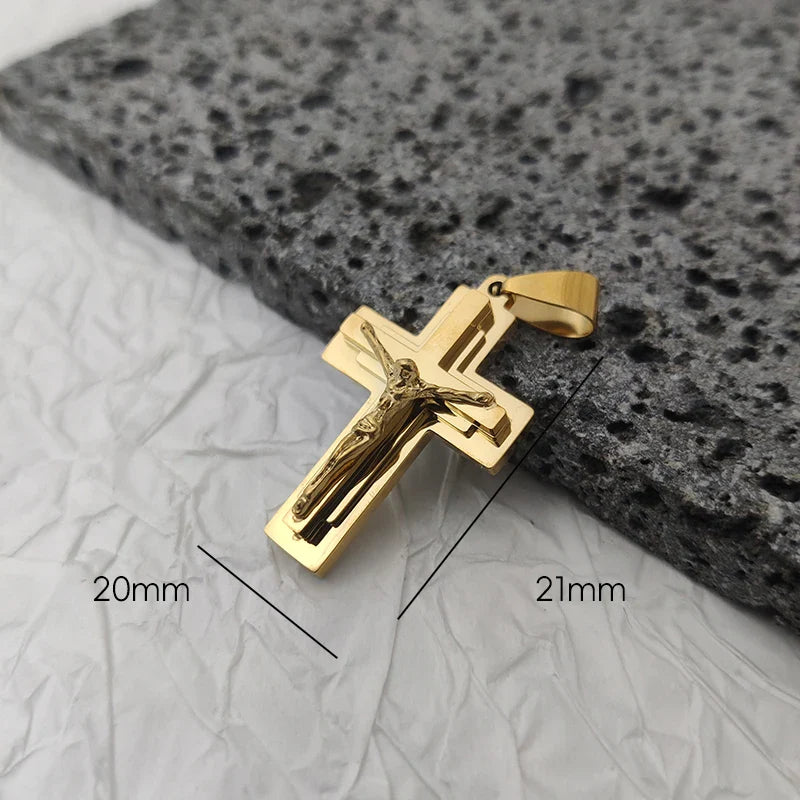 Carry your faith with strength and style — get your 18K Gold-Plated Jesus Cross Pendant today!