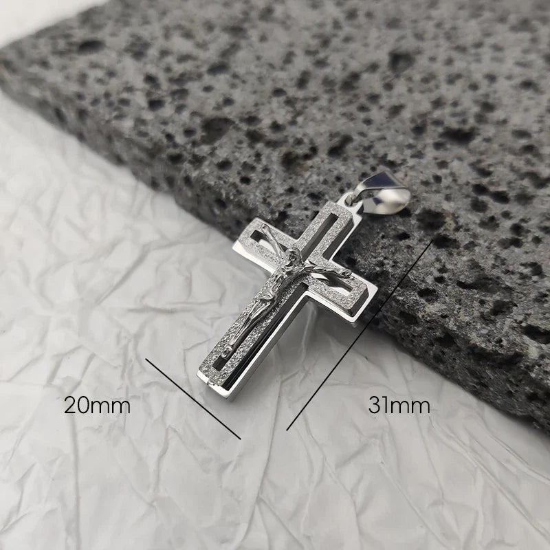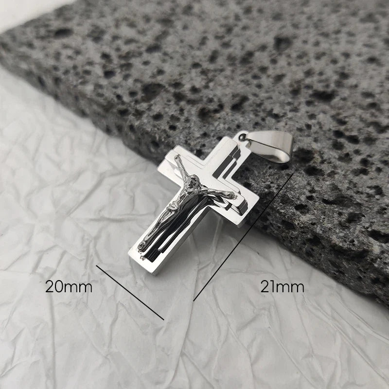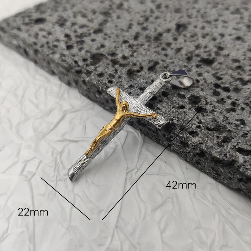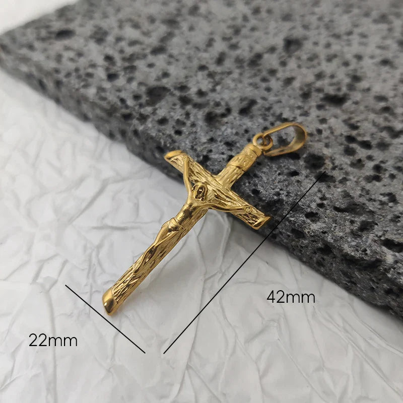 Make a bold statement of faith with this New Design Jesus Cross Pendant, crafted from waterproof stainless steel and finished in luxurious 18K gold plating. A powerful and stylish accessory for Christian men.
