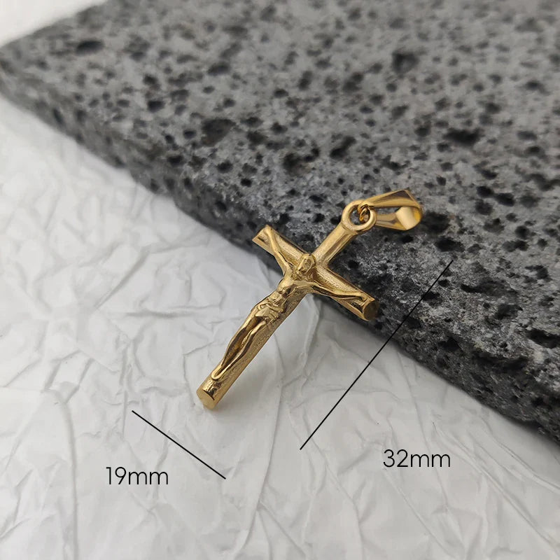New Design 18K Gold-Plated Jesus Cross Pendant – Waterproof Stainless Steel Religious Charm for Men