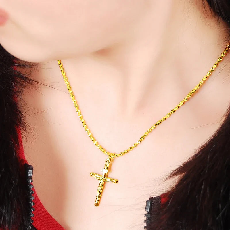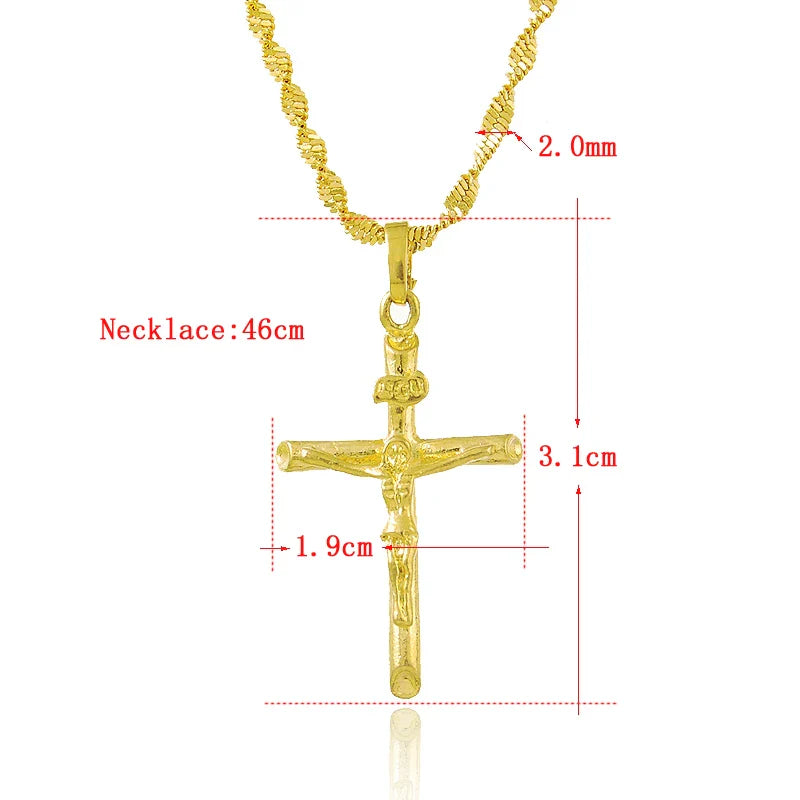 Real 24K Gold Color Cross Pendant & Necklace – Christian Religious Jewelry for Men & Women