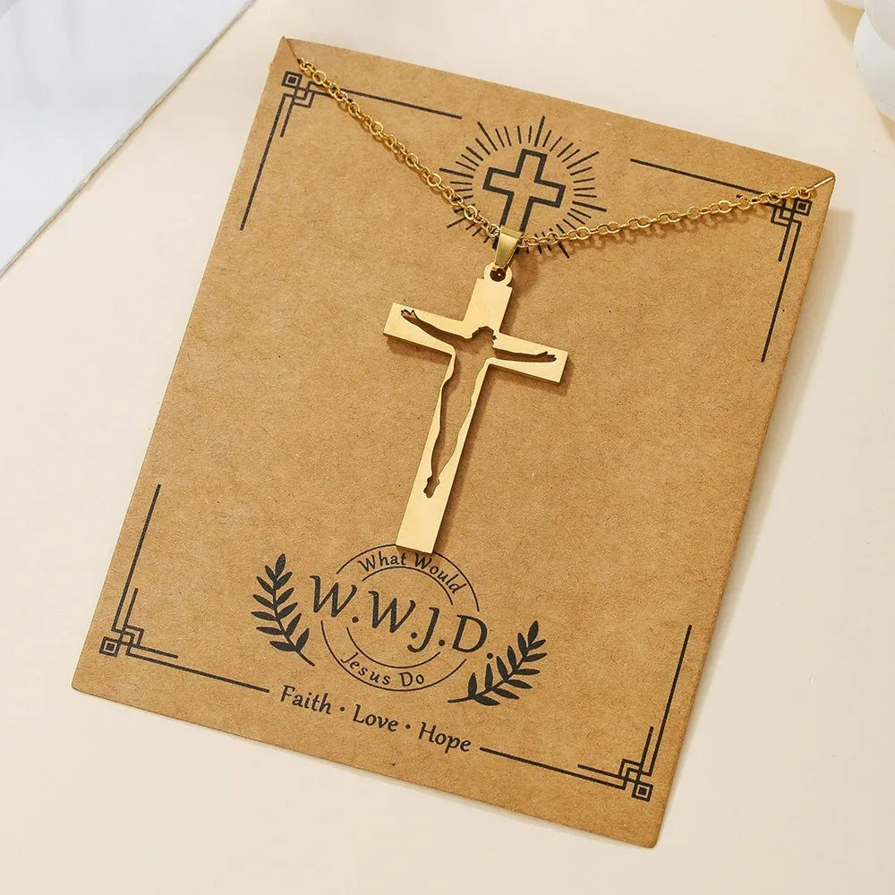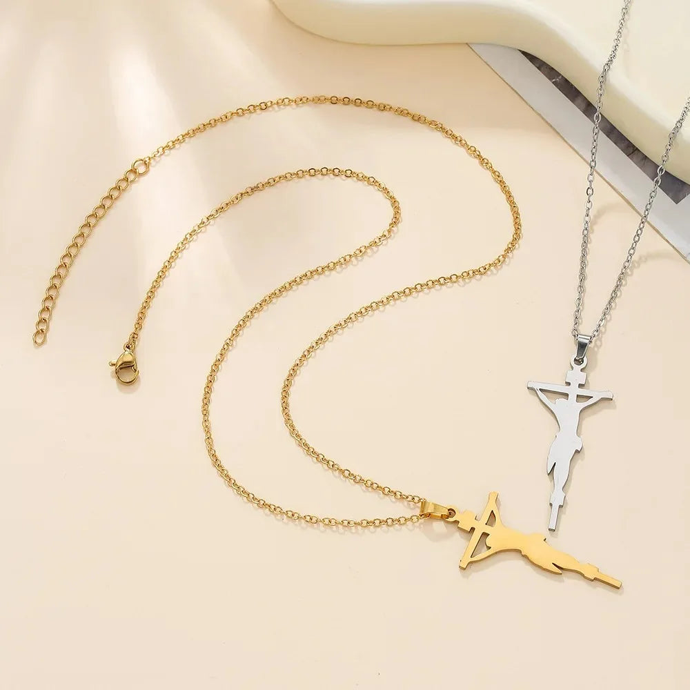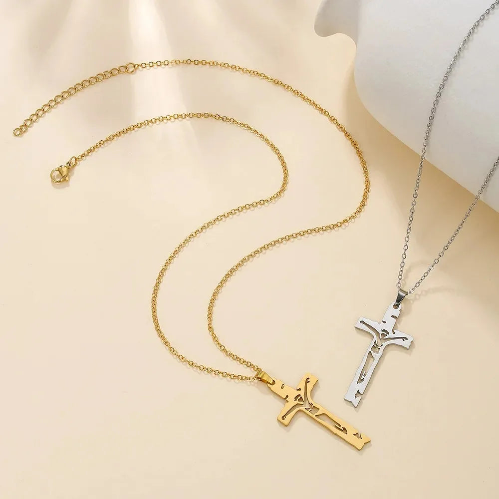 Stainless Steel Christian INRI Jesus Cross Necklace – Hollow Out Crucifix Pendant for Men & Women