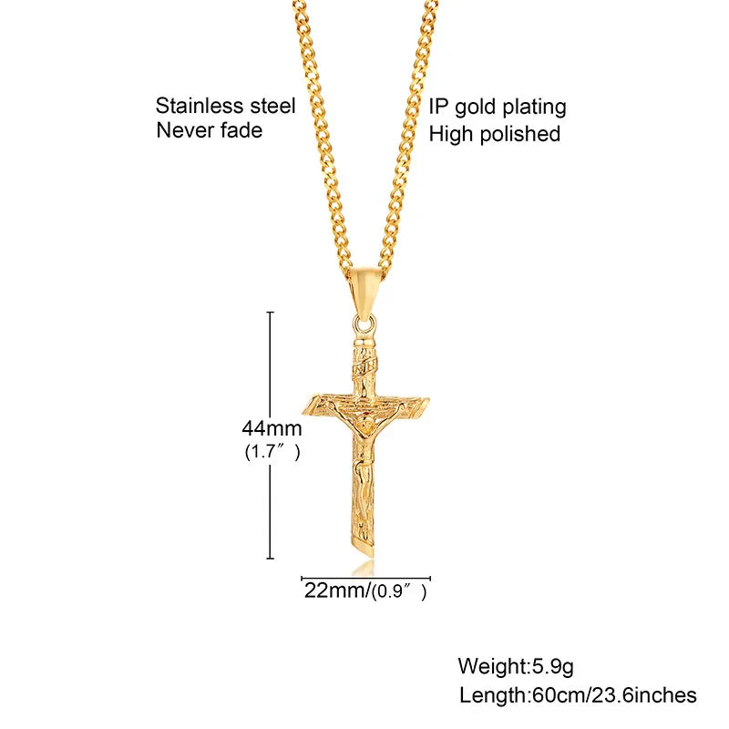 Vnox Cross Necklace – Unisex Gold Stainless Steel Jesus Pendant for Men & Women