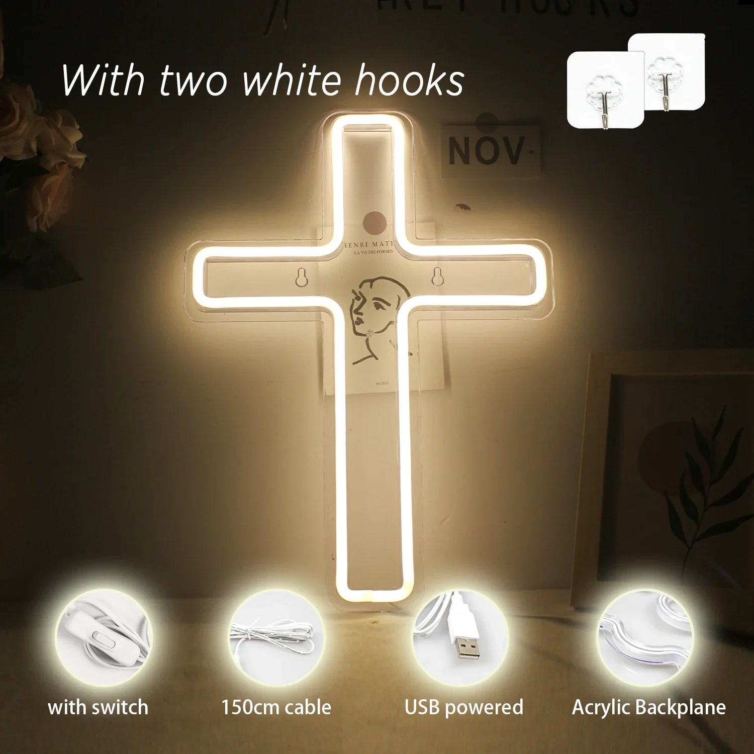 Wanxing LED Neon Cross Sign – USB Wall Art Lamp for Home & Events