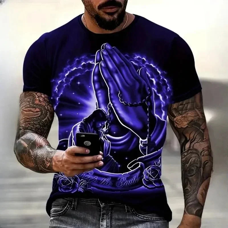 3D Jesus Print Pray T-Shirt – Christian Fashion Oversized Tee for Men