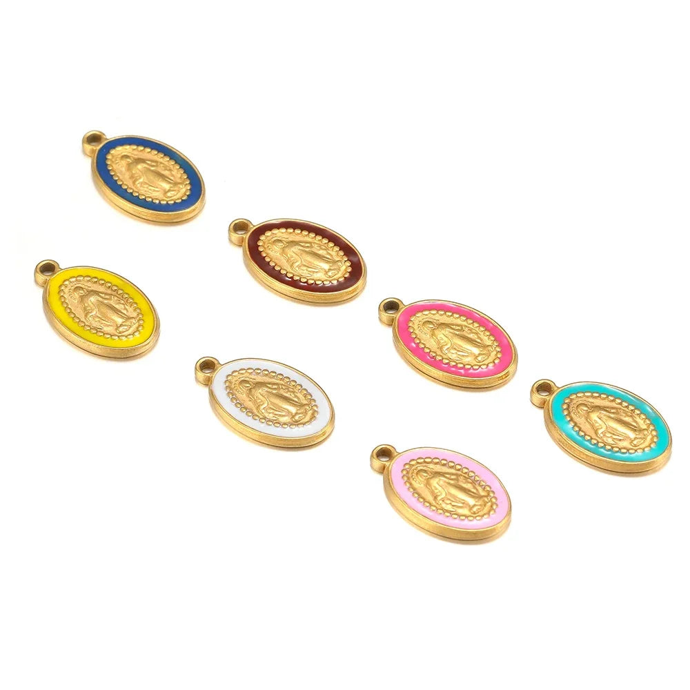 Get creative with the 5pcs Stainless Steel Oval Jesus Charms — your perfect DIY jewelry accessory kit!