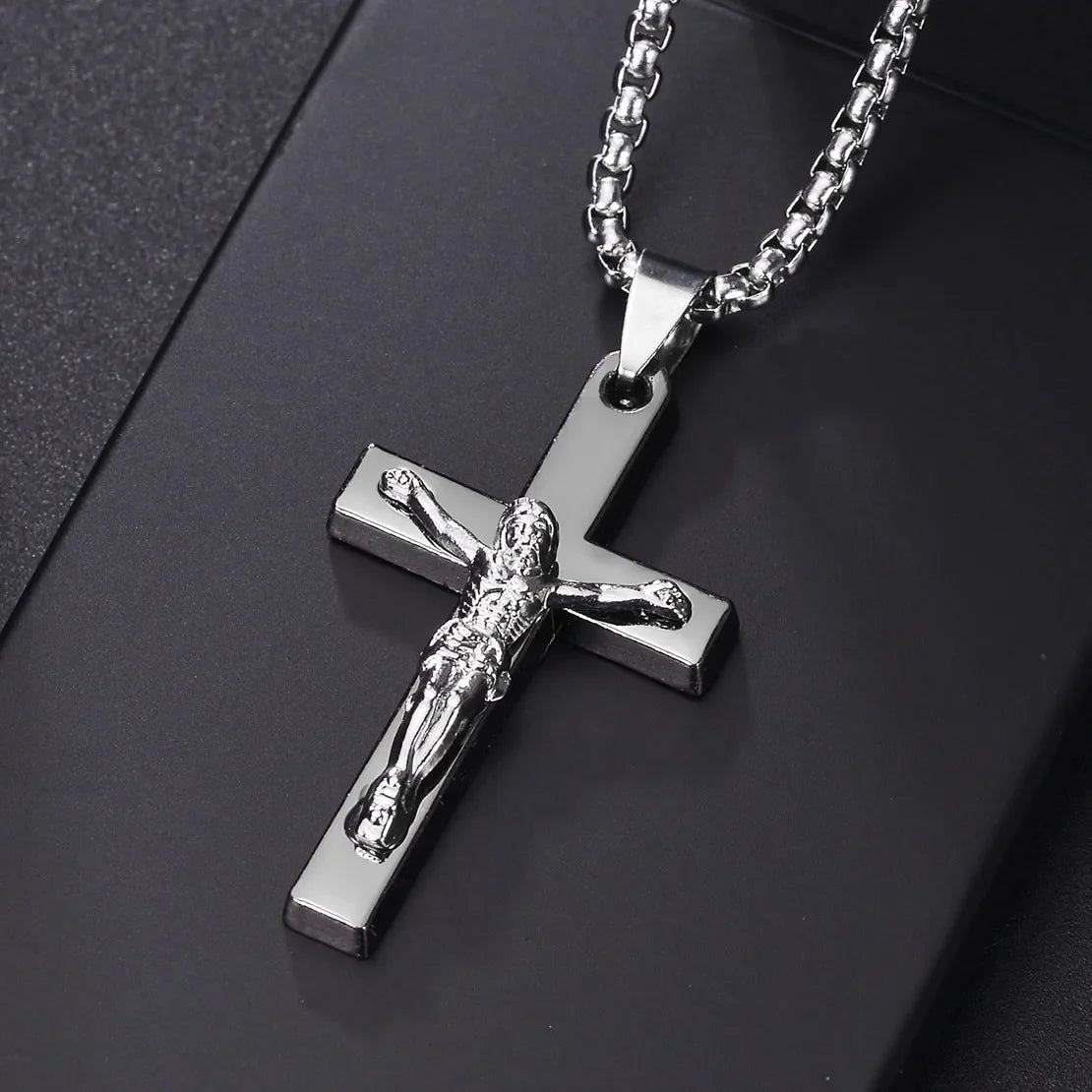 Christian Jesus Cross Necklace – Stainless Steel Pendant for Women & Men