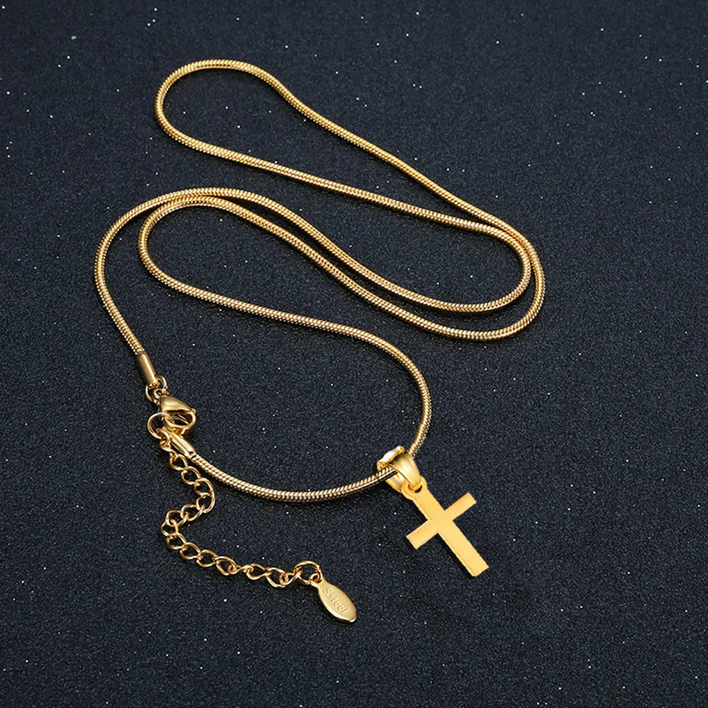 Fashion Small Jesus Cross Pendant Necklace for Women – Gold & Silver Stainless Steel Snake Chain