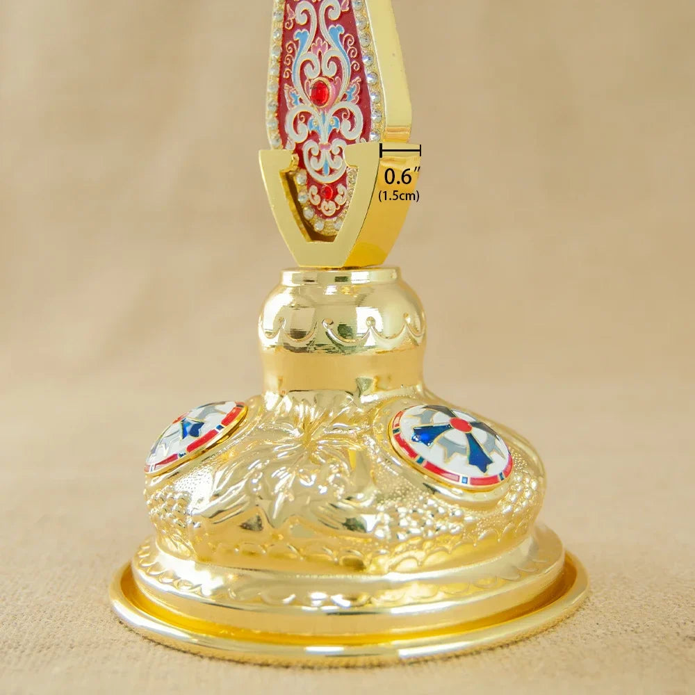 Elevate your sacred space with this Gold-Plated Metal Cross Stand, a beautifully crafted religious item ideal for Orthodox and Catholic worship. Perfect for altars, homes, or ceremonial use, it’s a symbol of devotion and reverence.