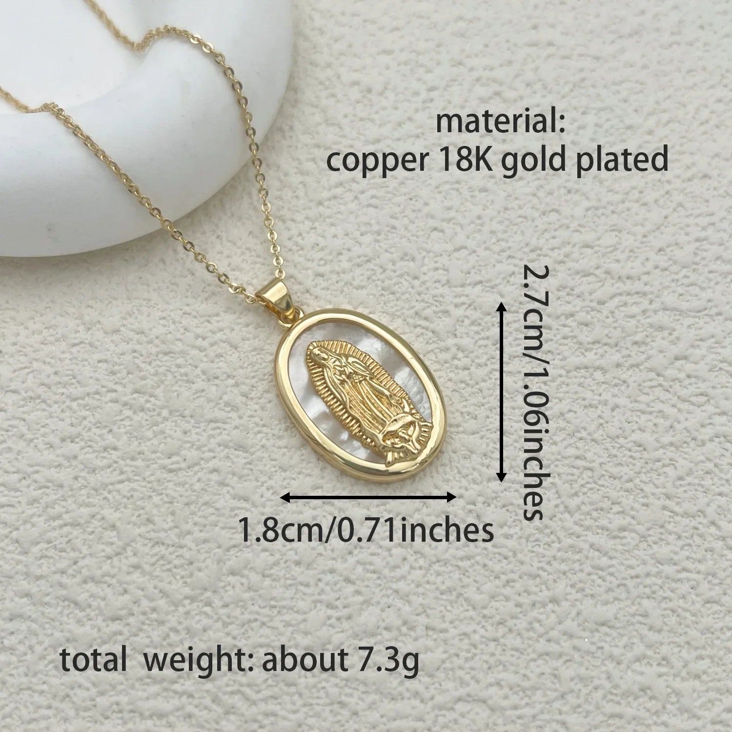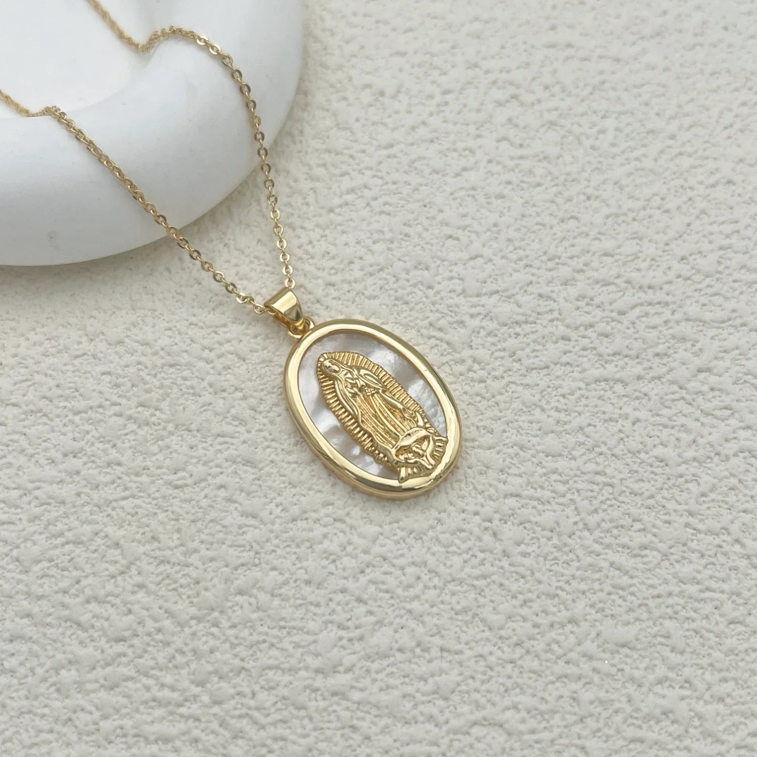 Gold-Plated Virgin Mary "Mama" Pendant – Virgen de Guadalupe Religious Amulet Necklace