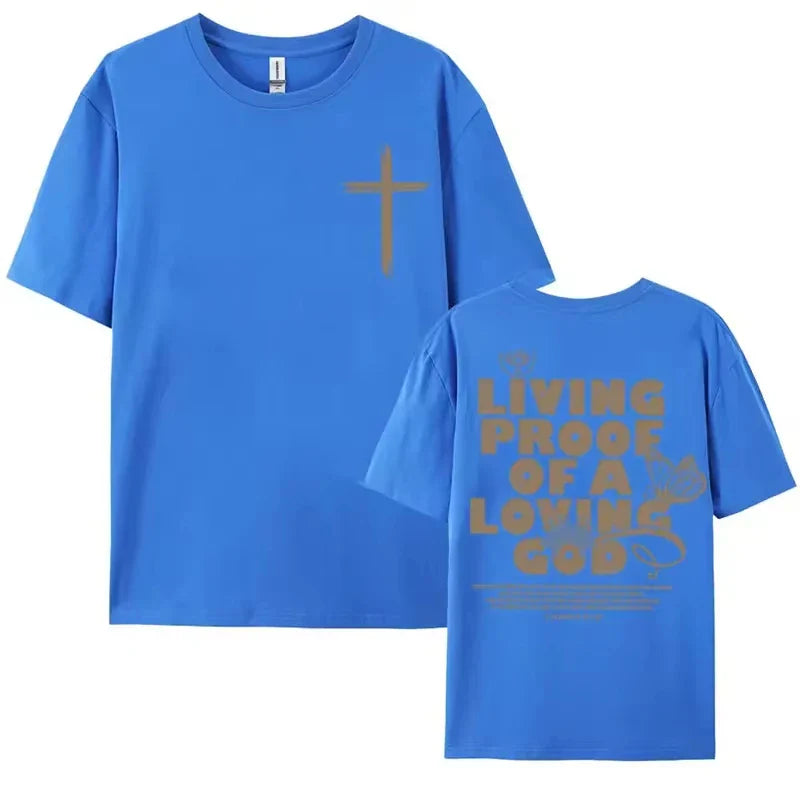 "Living Proof of a Loving God" T-Shirt – Inspirational Christian Oversized Tee for Men & Women