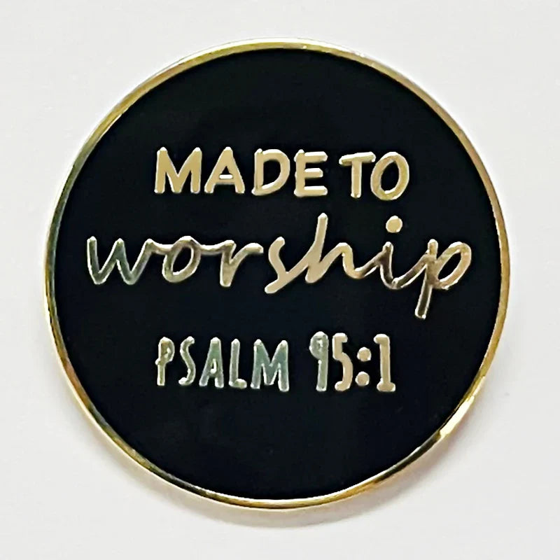 Made to Worship Enamel Pin – Psalm 95 Black Button Badge Christian Jewelry