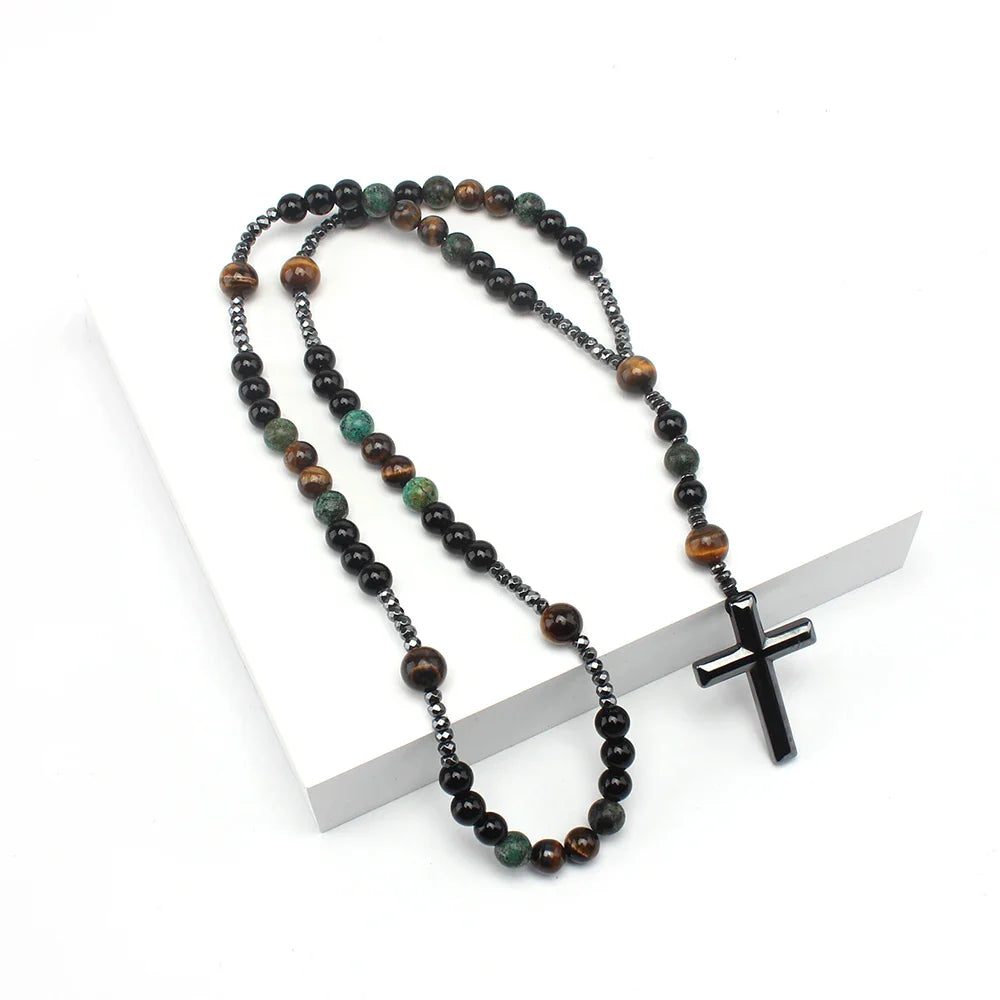 Celebrate nature and faith with this stunning Natural Stone Rosary Necklace, featuring vibrant African turquoise and warm tiger-eye beads. Perfect for men and women seeking a unique, spiritual accessory with natural beauty.