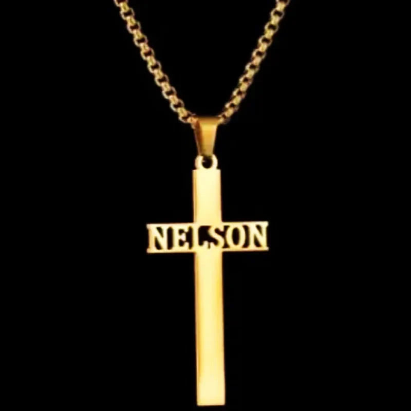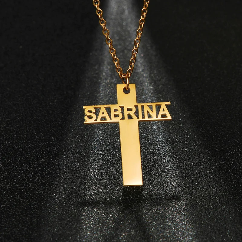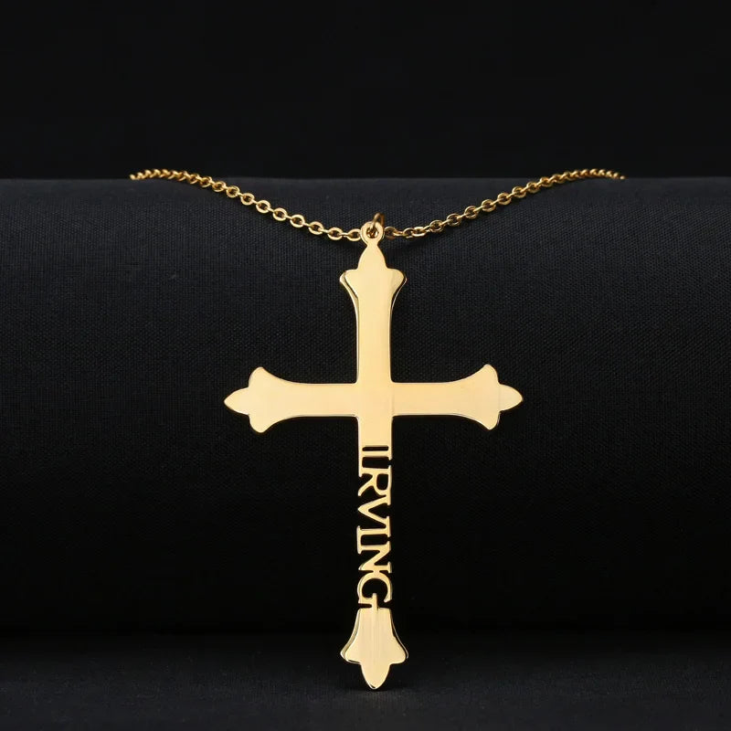 Customizable nameplate on cross pendant – add your name or a loved one’s