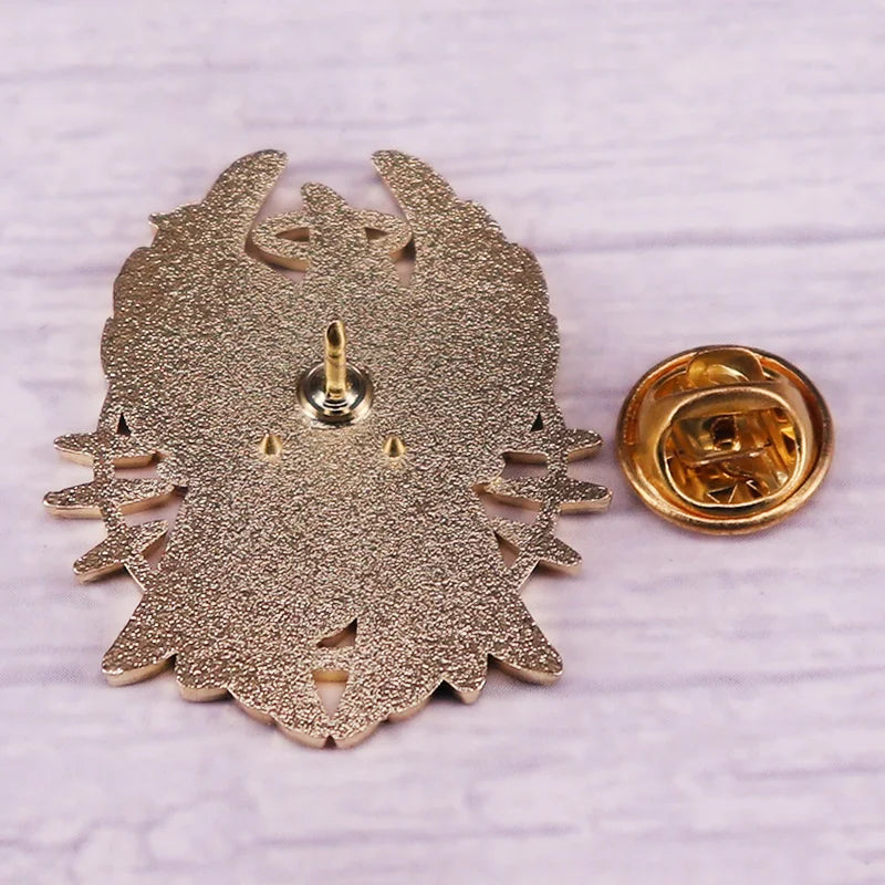High-quality metal alloy with hard enamel fill and a secure butterfly clutch pin backing.